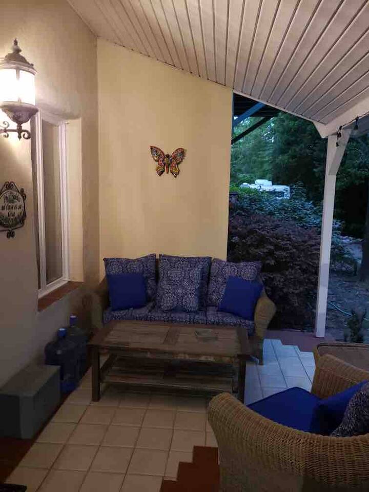 The entrance to your villa is on the south end of the home. Please use that driveway. Your area is separated from my home by an immovable well insulated barn door; some noise transference may be possible.