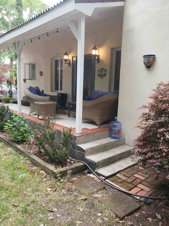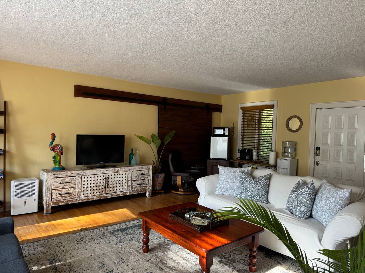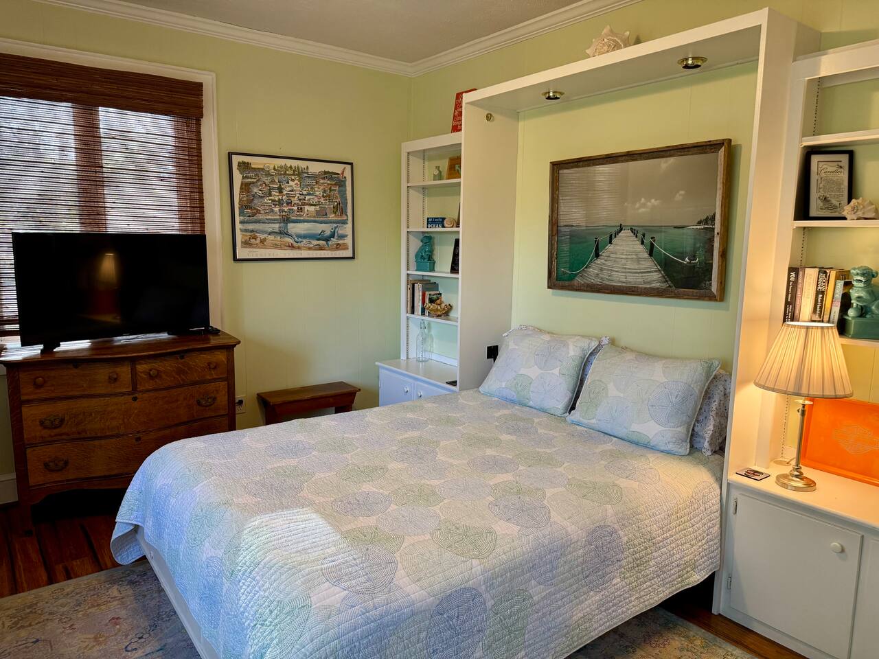The Spanish Villa is located on the 18th hole with direct sight line to the green AND only two blocks from the infamous Cavalier! Hardwood floors throughout. Queen bed in Master bedroom with attached bathroom. Very wide open, huge living room with plenty of light yet black out shades for sleeping on pullout couch. New bedding, towels, mattress with memory foam. Listen to the wind in the trees, front and back porches and doors make this a home. Although we are a 5 minute walk from the beach, when here, you will enjoy the serenity and luxury of golf course living. Two couches allow guests to keep the hide-a-bed out yet still hang out in the living room. The 30 foot high green hedge make the house virtually private from the road. Off street parking for two large vehicles. The guest's space is divided from the main home by an immovable barn-like wooden door that is well insulated however noise transference is possible.