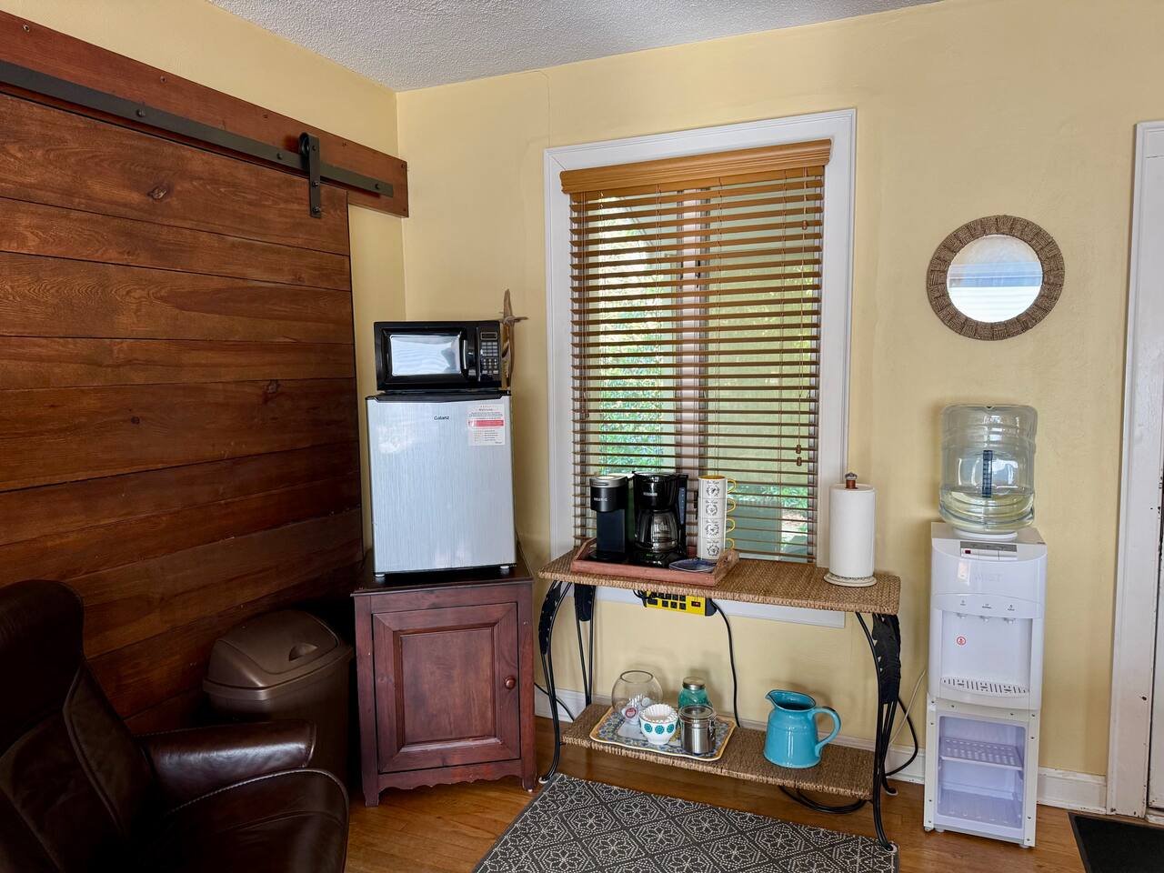 Rich in history, this 1924 Spanish Villa has been restored to vintage perfection. Situated on Princess Anne Golf Course with sprawling views. Huge living room, one large bedroom, two outdoor patio areas. Three blocks to the boardwalk, 5 min walk and a 3 min bike ride to the beach. Beach towels included! No kitchen but does include mini fridge, microwave, coffee pot with coffee/filter, & Culligan hot/cold filtered water. Murphy queen bed in bedroom & Queen highend sleeper couch in living room!