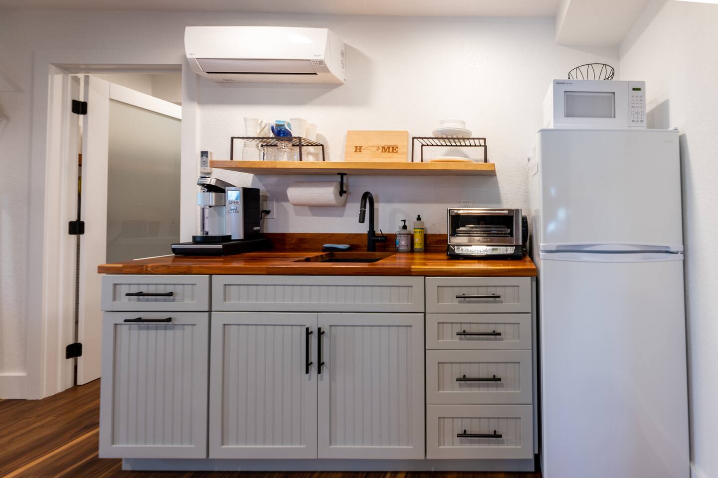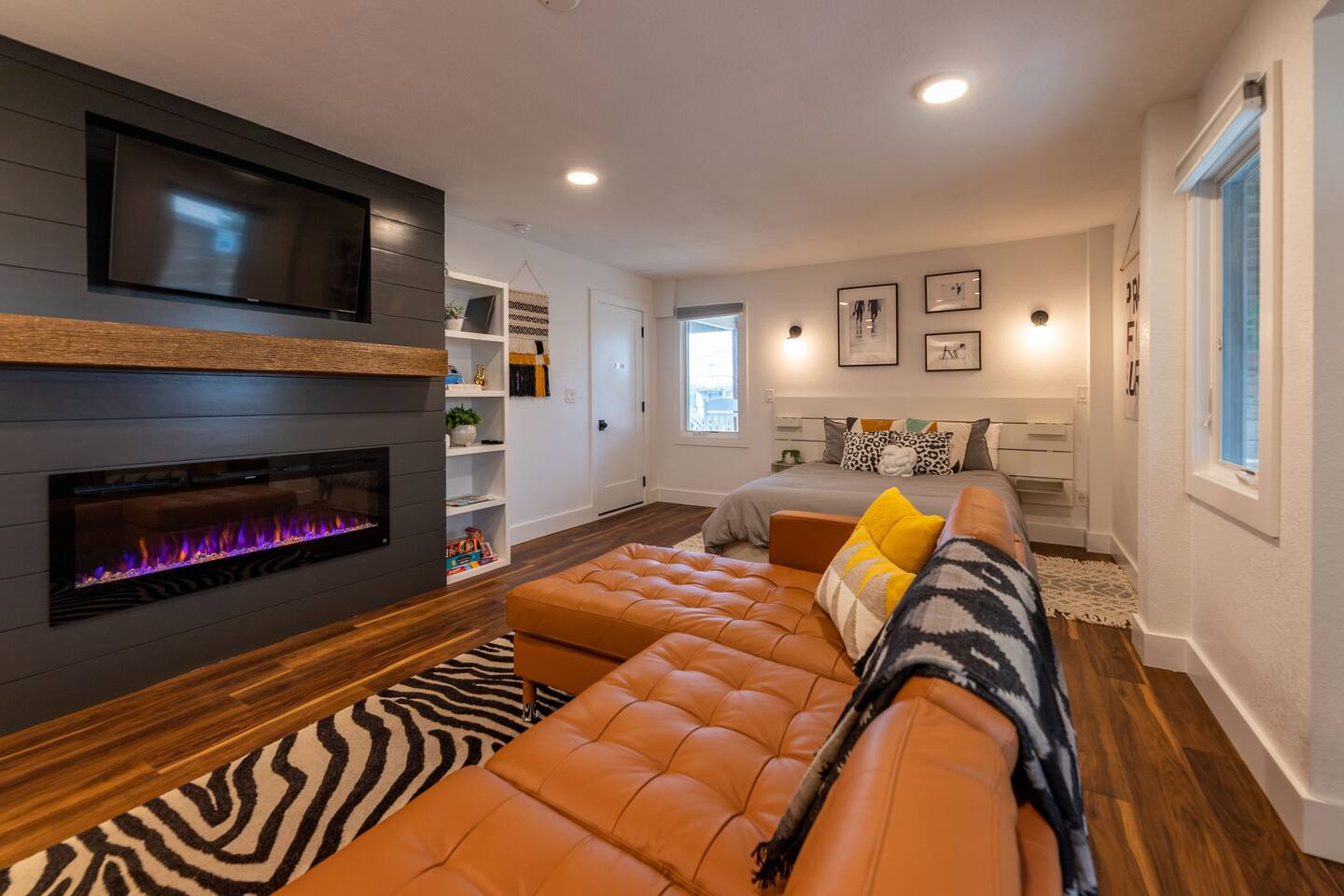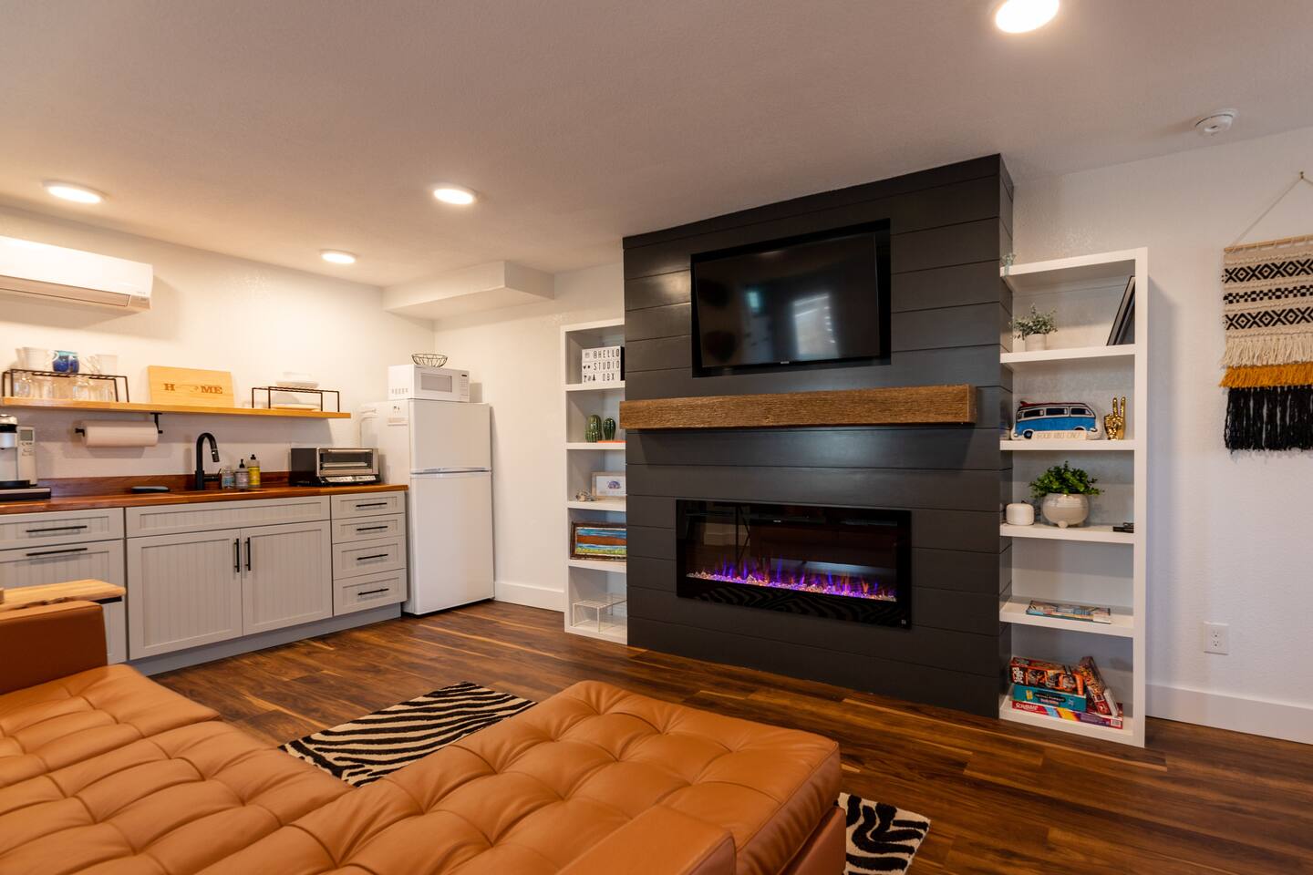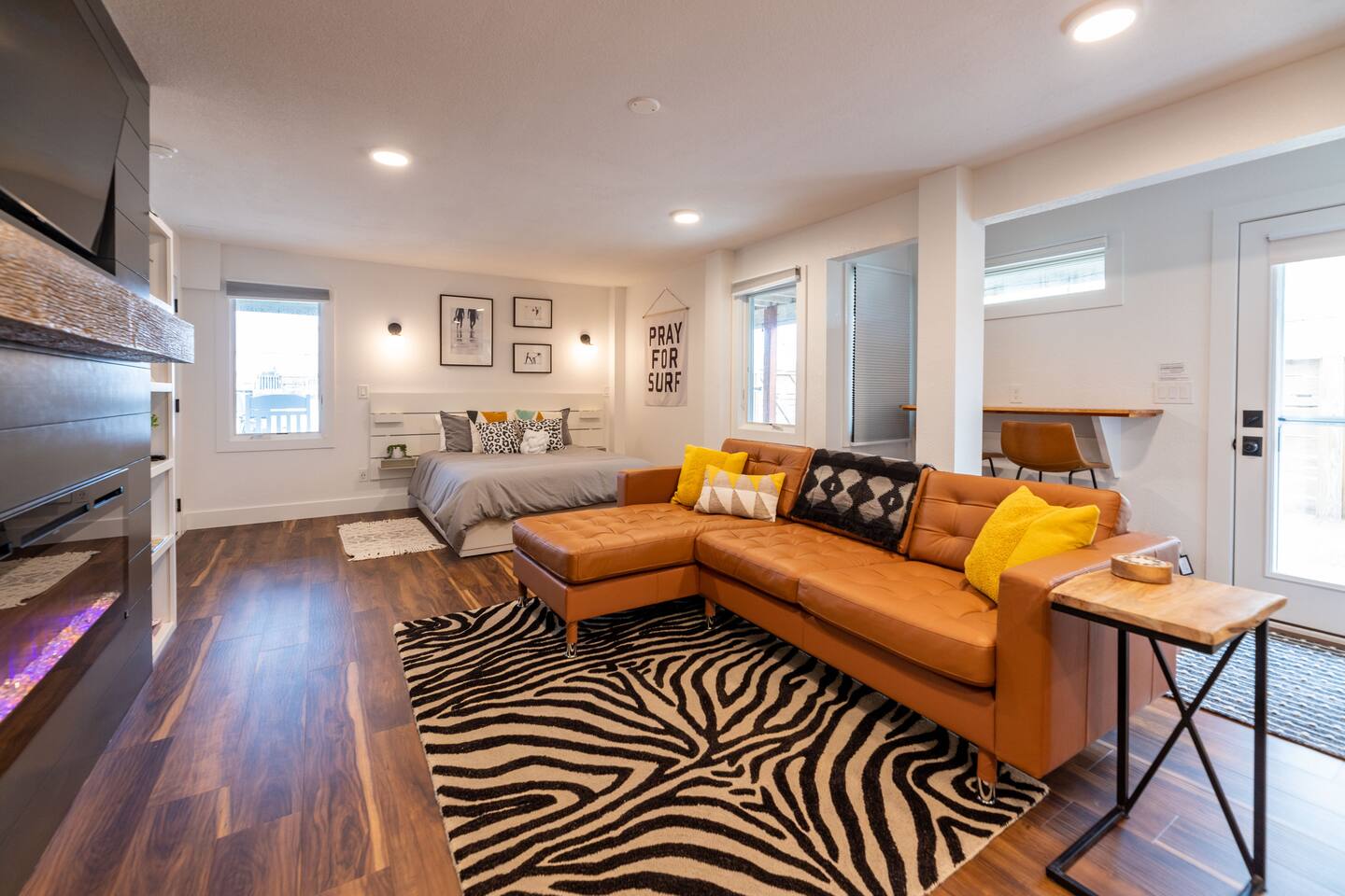 This home adopted a Cottontop Tamarin - Travel with Purpose when you stay with us and assist in global efforts to help save this beautiful species! 🌅 Walk just 0.5 miles to the beach for stunning sunrises and all-day beach bliss 🌊 Less than 0.5 miles to the Sound and the scenic Bay Drive path – ideal for biking, walking, and catching those famous OBX sunsets 🛣️ Quick access to the main road – explore Kitty Hawk, Nags Head, Duck, and beyond with ease 🍷 Surrounded by local favorites – wineries, breweries, grocery stores, coffee shops, and restaurants all just 1–5 miles away 🛩️ Bike or stroll to the Wright Brothers Memorial via the multi-use path Modern Studio is located on lower level of home. Completely separate entrance with fenced in patio area that includes a rinse off station for when returning from the beach! Queen bed, high-top workstation/dining area, leather couch facing smart TV and electric fireplace to make for an extra cozy, relaxing environment! Kitchenette area with small fridge/freezer, K-cup machine, and microwave. Well-appointed bathroom with large shower. BONUS - Hot Tub included & Cornhole! Do you need more room with access to seasonal outdoor pool? There is an additional separate space available for rent located above The Recovery Room. You can find this space by going to the host profile - it is called Knot on Call!