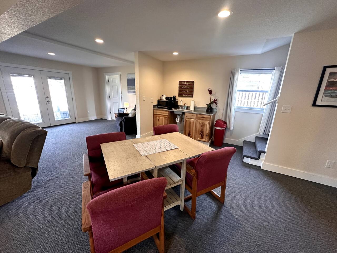 🛶 What You’ll Love: Waterfront patio with peaceful views of the ICW Comfortable layout for up to 4 guests Just a short walk to Coinjock Marina Restaurant & Ship Store – enjoy outdoor dining, fresh seafood, and live music on select nights Close to local adventures: • 26 miles to the beaches of the Outer Banks • 19 miles to H2OBX Waterpark • Nearby boating, kayaking, wineries, and golf courses Ample parking and a laid-back, marina-side setting Whether you're a boating enthusiast, road-tripping couple, or small group looking for a peaceful place to unwind after a day exploring the Outer Banks, Fisherman’s Bend is your perfect home base. 🌊 Kick back, cast off, and let the water set your pace. Enter at ground level to a large dedicated office space, living room, dining room, kitchenette space and mini fridge. Two bedrooms and one bathroom located at the back of the house!