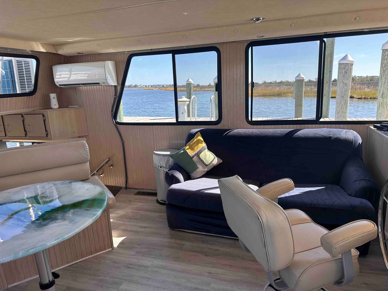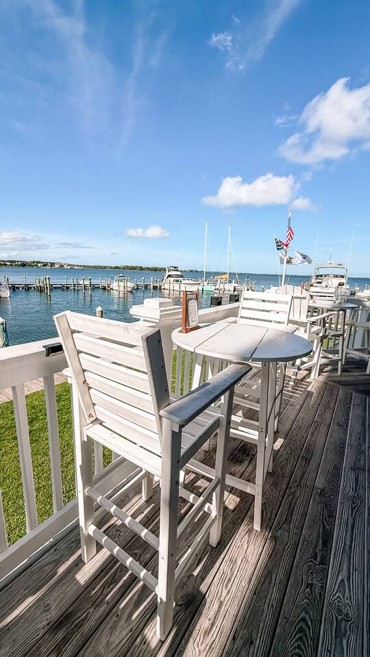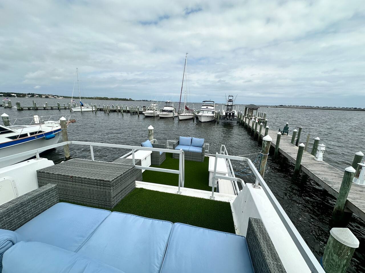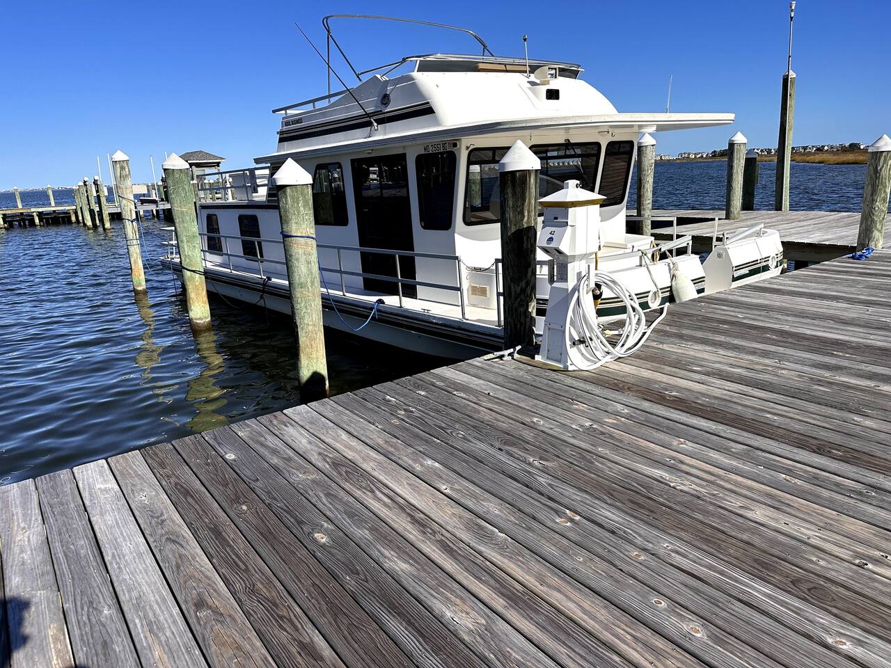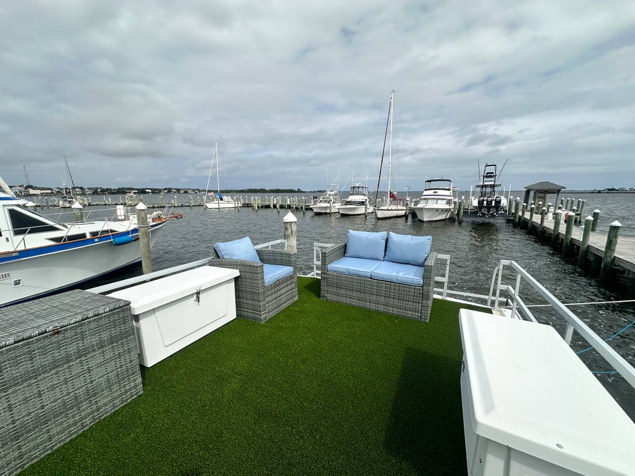 This space adopted a Hawksbill Bale - Travel with Purpose when you stay with us and assist in global efforts to help save this beautiful endangered species! Eco-Inspired Waterfront Stay • Kayaks Included • Unique Floating Experience 🚤 What You’ll Love: Stay aboard a peaceful floating home in a quiet marina Your own private WiFi—stay connected while you float 2 fishing & pleasure kayaks included for exploring the surrounding waters A truly unique, eco-conscious escape—perfect for couples, creatives, and adventurers Whether you're watching the sunrise from the deck, kayaking through calm waters, or simply enjoying the rhythm of life on the water, Floating in Paradise offers a stay that’s both serene and sustainable. Float with purpose. Book your unforgettable waterfront getaway today! The Azul Project, a 2004 44' Gibson Houseboat! Soak up the sunshine or stay tucked inside cuddled up with your favorite book and enjoy the North Carolina fresh salty air! The Aft Master Stateroom has a Vanity, Dresser Storage, adjoining bath with electric head (toilet) and sink! (NOTE: Shower onboard is not for use. Just steps away from boat are two showers located in Marina building next to laundry room. There are also several other showers with regular indoor plumbing located in the Clubhouse that you have access to during your stay. These spaces are maintained by the Marina and not your host.) Also, on board is a well equipped kitchen with refrigerator and freezer (bring your own ice), microwave, pantry, double sink, 3-burner range & dining area! You will notice oven in picture but it is NOT an offered amenity. Located in the Salon is a sofa with Roku Smart TV, DVD player with several DVDs and AM/FM radio! Note - cable/satellite not provided. Carpet on stairs and LVT flooring throughout the rest of the boat! Lots of outdoor decking with outdoor couches to enjoy the Carolina sunshine and Shallowbag Bay Views! NOTE - No outdoor shade coverage due to high winds that can creep up on us in the OBX and could cause a safety issue.