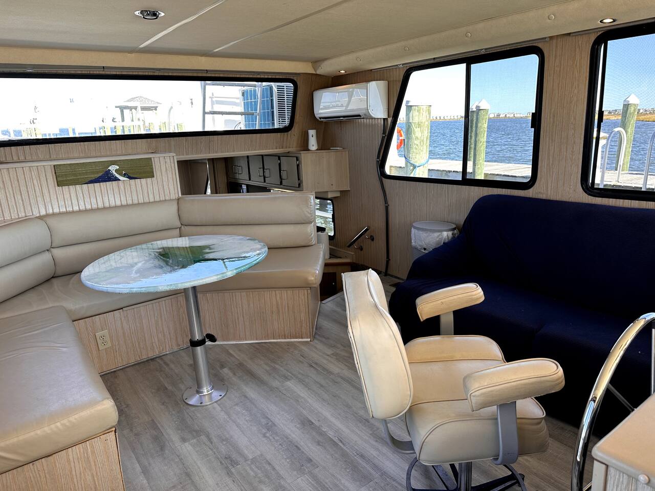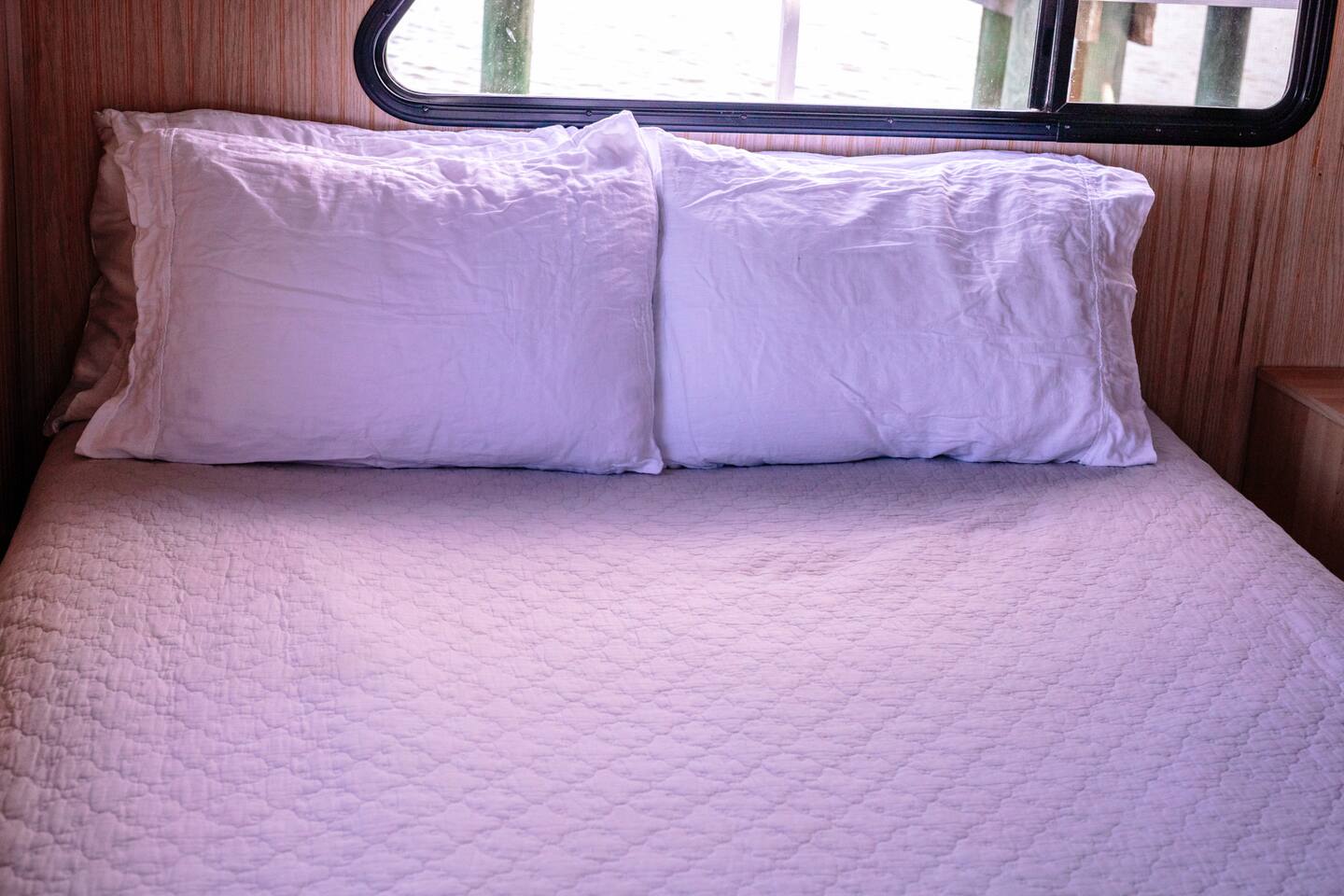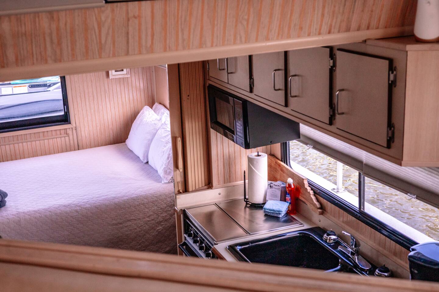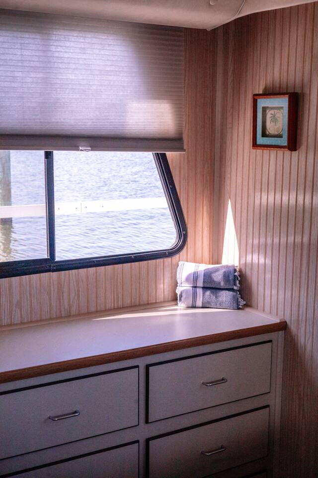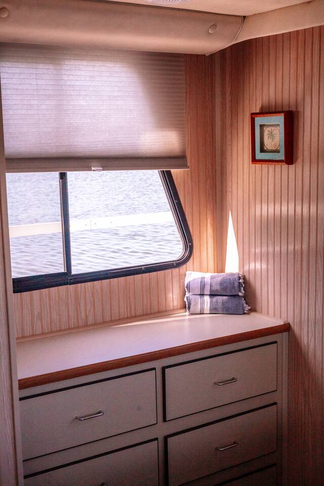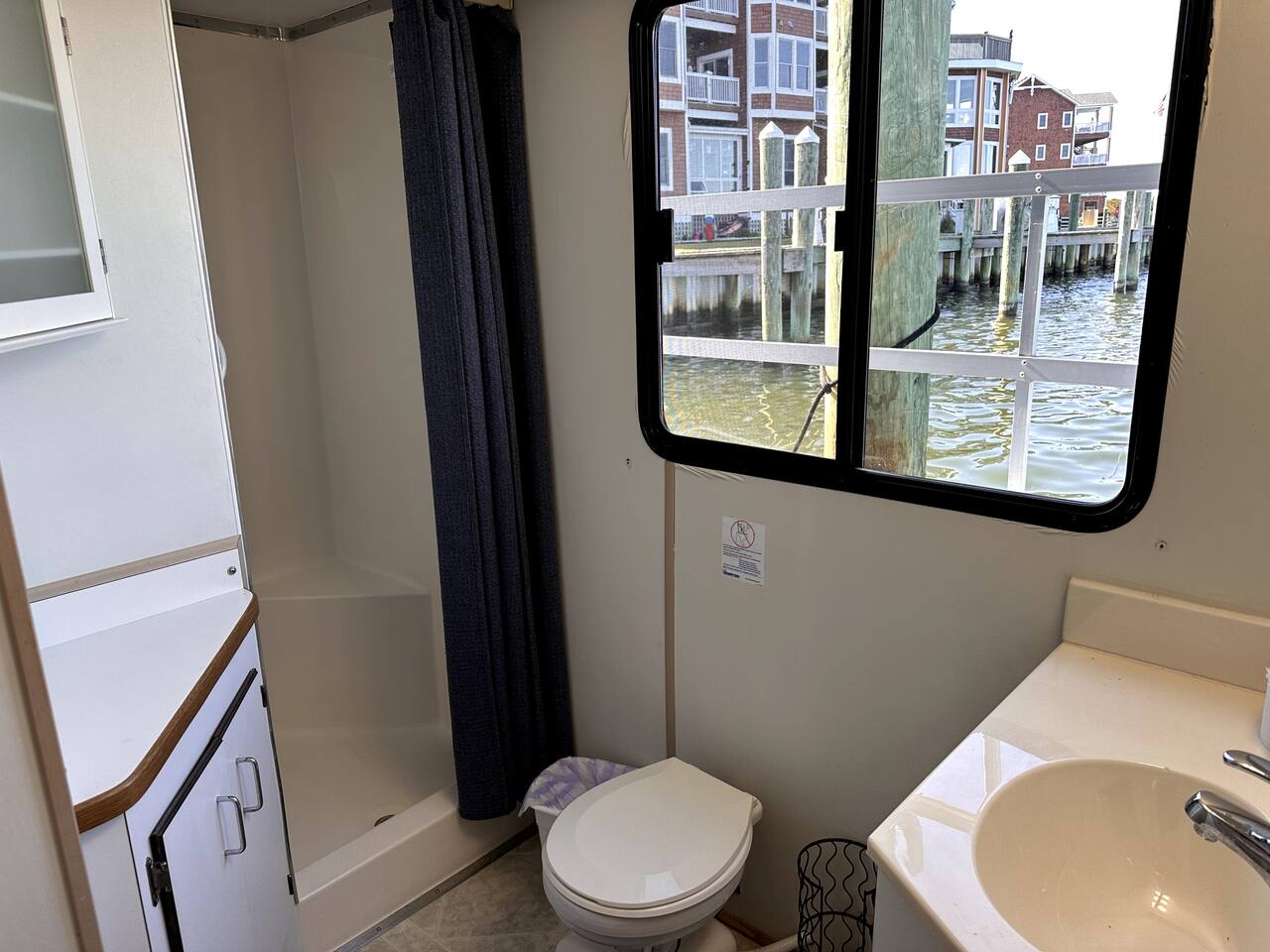 The houseboat is floating at a slip where tide fluctuates - therefore you may have to step down or up to enter the boat. Remember - nature around the water includes spiders - they will often weave their webs at night on the outside railings. They are easy to Knock down in the morning and are just part of living on the water! Please remember this is a boat and therefore water pressure is different then what you may be used to with the indoor plumbing in your home! As mentioned earlier you have access to several full bathrooms with private showers with hot water. Hot water does not flow on the boat sinks! Split type ductless system provides Heat & AC on boat. Please ask your host if pool is open during your stay, if the pool is important to you, as it is maintained by the Marina and not your host. Please bring your own beach/recreational towels. One bath towel and wash cloth provided per person. Tuesday & Friday or Monday & Thursday is when the Marina bathrooms and clubhouses are tended to by the Marina staff.