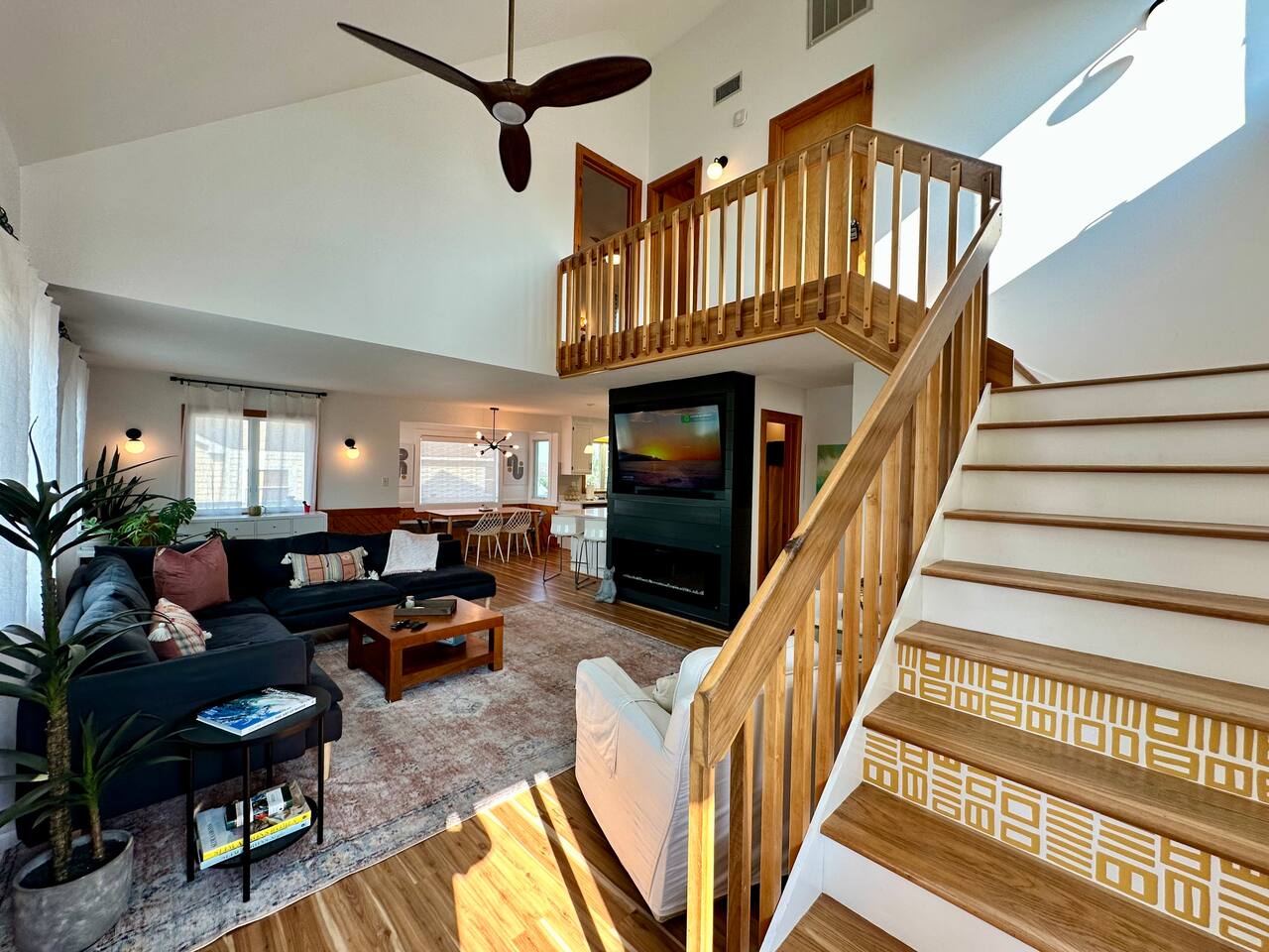 Forget your worries in this spacious & serene space! Centrally located in the OBX at the line of Kitty Hawk- located on the skinniest section of Kill Devil Hills, 0.5 mile to beach & 0.3 mile to the sound for easy access to beach & multiuse path that runs along Bay Drive! Stay off the bypass & utilize the slower paced Bay Drive to get to many places you need to go, avoiding traffic! At ground level is a separate 2 person studio available for rent separately - for a total accommodation of 6!