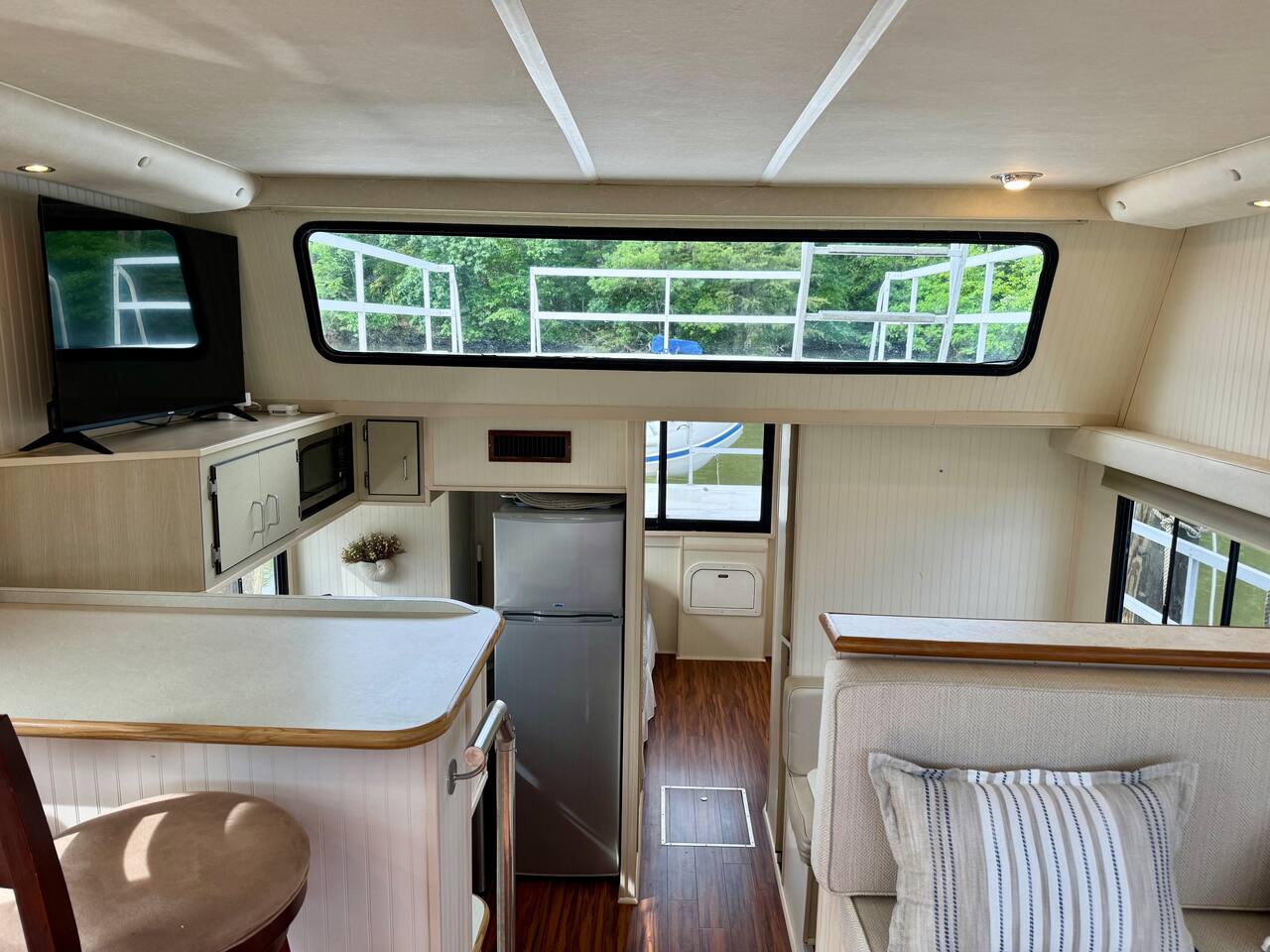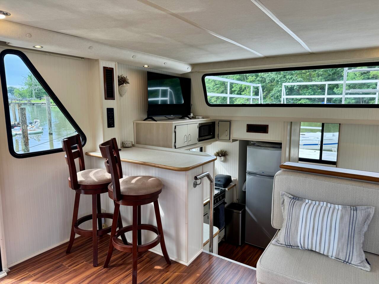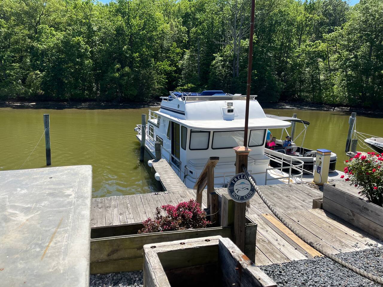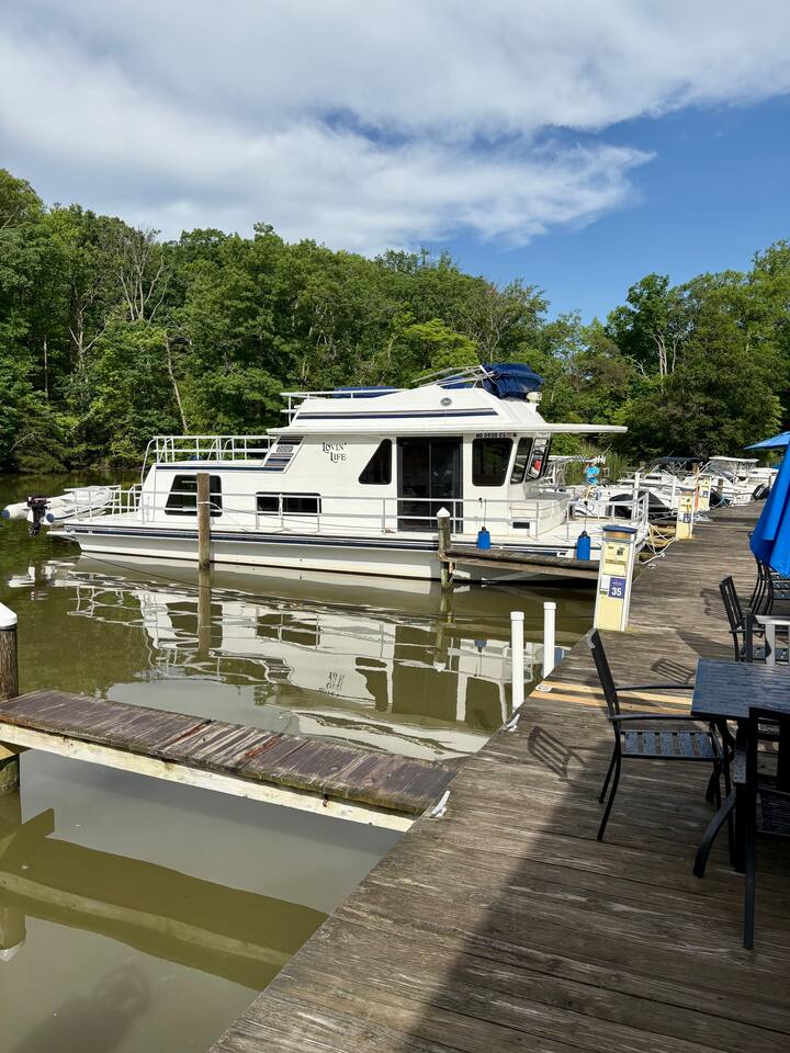 Escape the ordinary & fall in love with life on the water aboard “Lovin’ Life”—a cozy, romantic retreat on our beautifully maintained 2003 Gibson Classic, a unique blend of houseboat & cabin cruiser. Docked on peaceful Sue Creek, this floating hideaway offers a memorable stay filled with relaxation, waterfront views, & fun! Houseboat Charm • Outdoor Fun • Waterfront Dining Steps Away! On-site Charley’s Waterfront Restaurant with indoor & outdoor dining + plenty of TVs for sports fans!