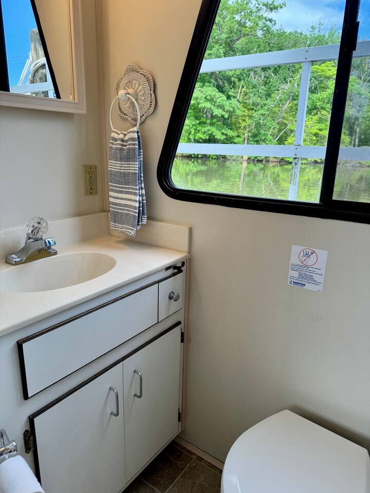 Dingy is not part of the rental. Remember - nature around the water includes spiders - they will often weave their webs at night on the outside railings. They are easy to Knock down in the morning and are just part of living on the water! Due to freezing temperatures in the winter months the marina will winterize the hoses and therefore water onboard will be limited to the toilet use only. Running water is accessible in the bathhouses located off the restaurant just steps away from the boat!