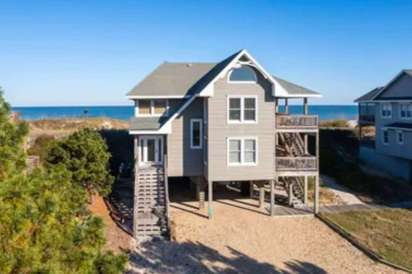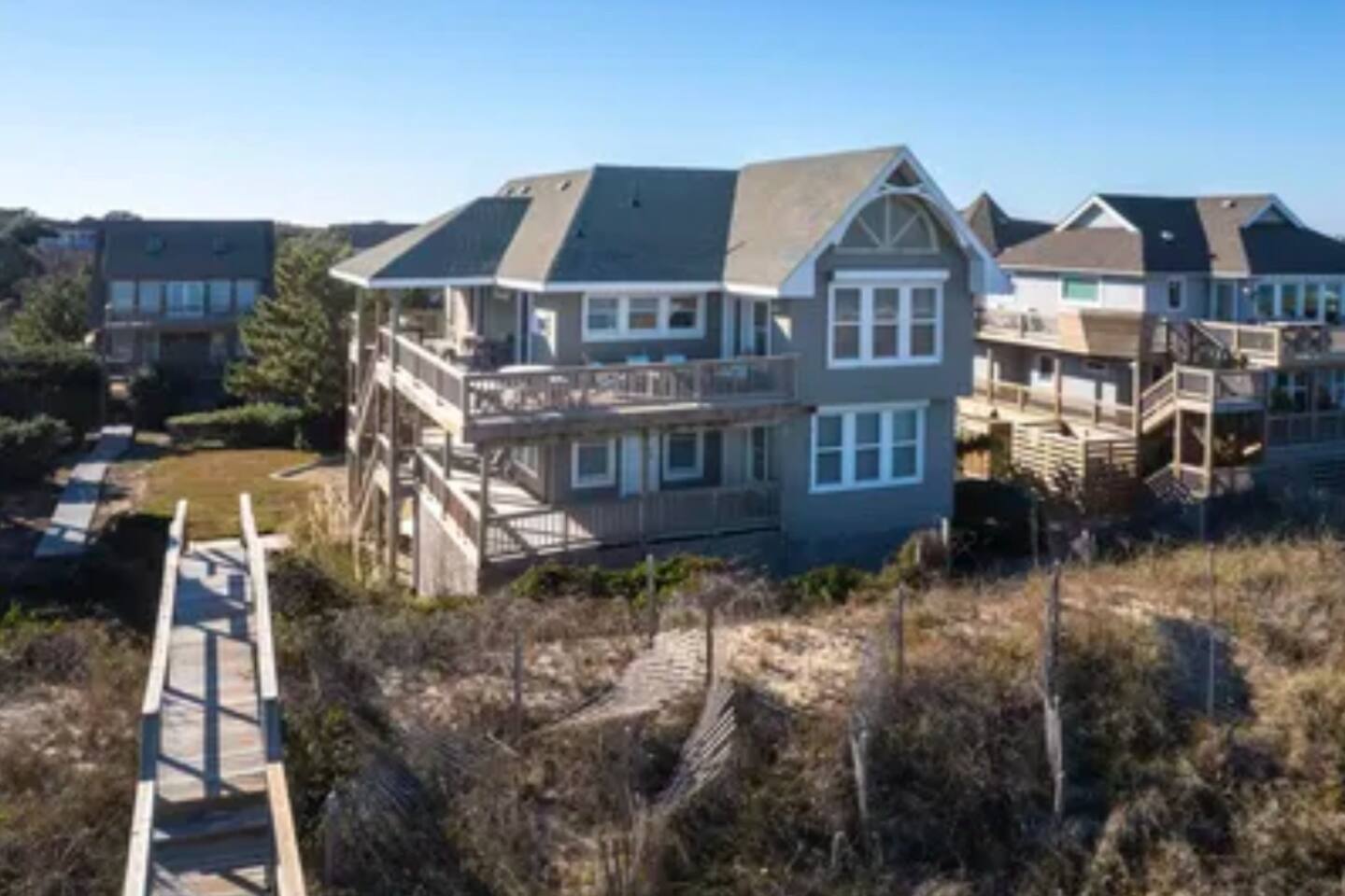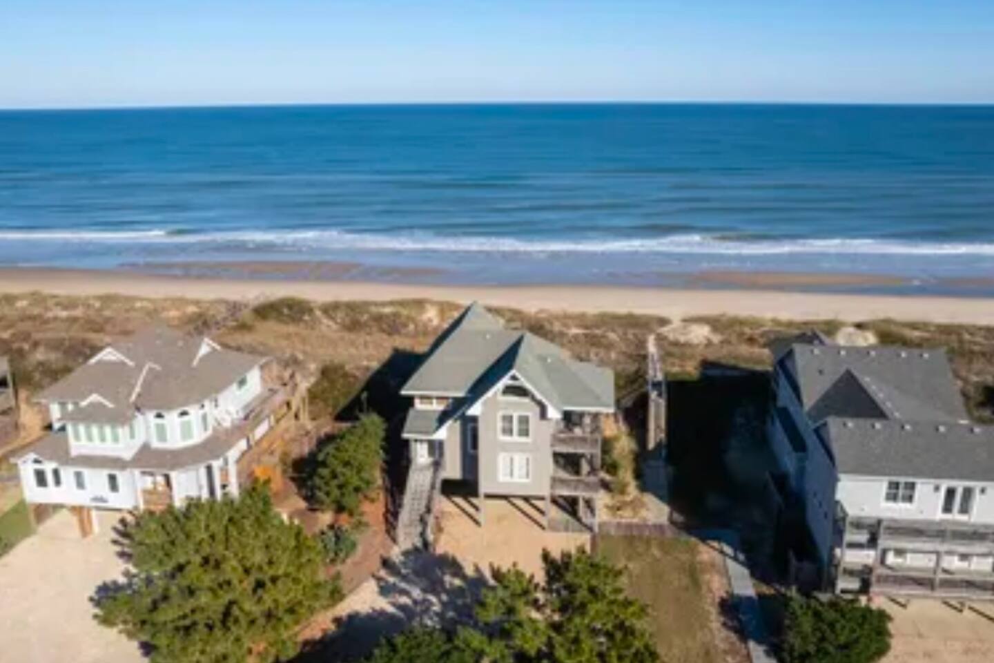 Cozy Oceanfront Sanderling Oasis with Unmatched Views... 🌊 Direct beachfront living – step off the dune and onto your own stretch of sand 🌅 Mesmerizing ocean views & sunrises from your living room, deck, and more 🚶♀️ Walk, bike, or drive to Duck’s famous shops, boardwalk, dining, and galleries 🐎 Head north to see the wild horses of Corolla or tour iconic OBX lighthouses 🎾 Enjoy access to Sanderling’s community pool, tennis courts, and even schedule a spa day Book your oceanfront retreat today and experience the magic of Duck in true OBX style! 4 Gulls & A Bouy is perched on the dune with walkway to the private dune walk beach access directly next to the property including foot wash. Come off the beach and enjoy the spacious outdoor shower under the home. Go up one flight of external stairs to first level of living including three bedrooms and three bathrooms. Go up one more flight of internal stairs to the main living area with amazing ocean views, fireplace, kitchen, dining, living room and master bedroom with attached bath. Enjoy the oceanside decks to soak up the breeze and salty air!