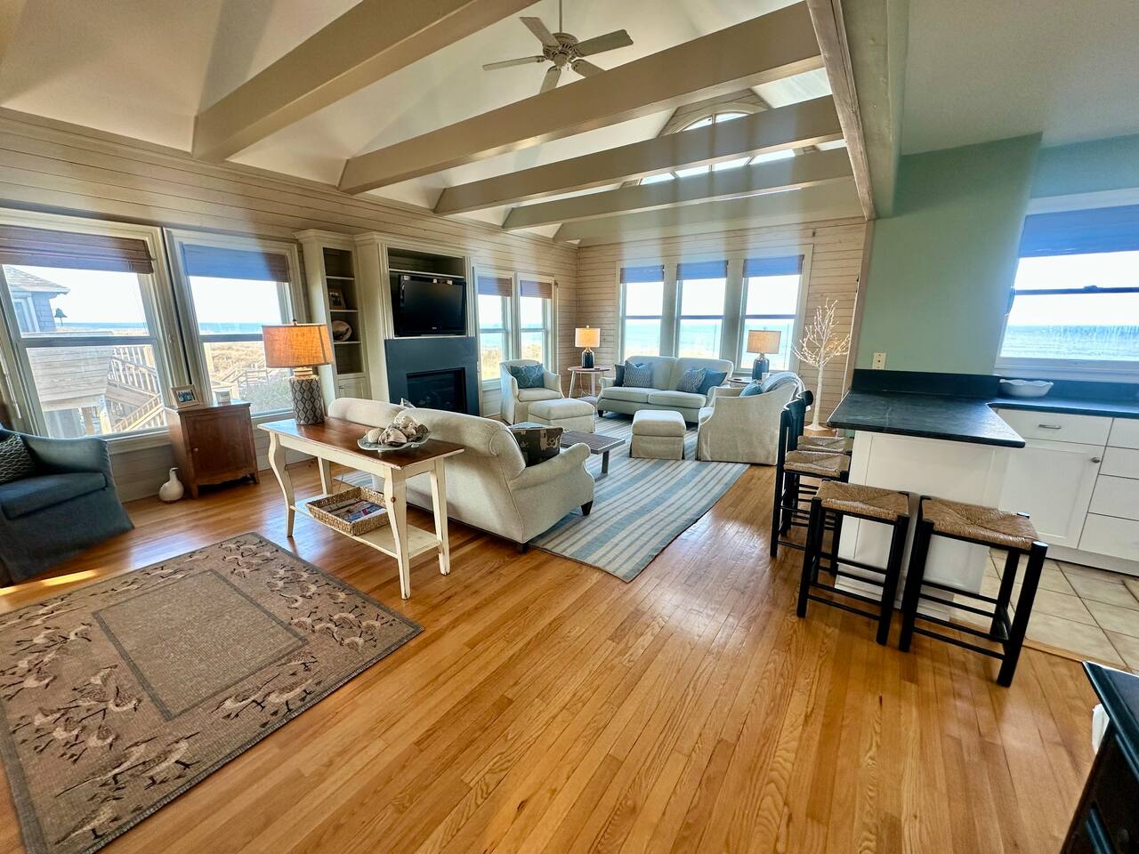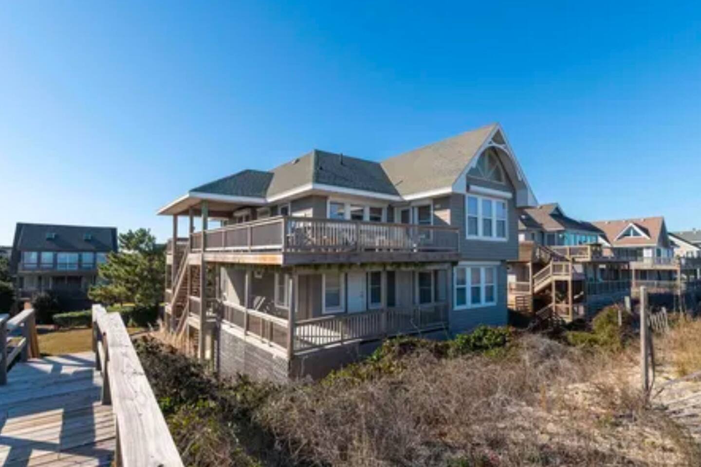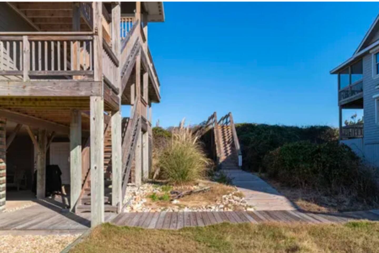 Cozy Oceanfront Sanderling Oasis with Unmatched Views... 🌊 Direct beachfront living – step off the dune and onto your own stretch of sand 🌅 Mesmerizing ocean views & sunrises from your living room, deck, and more 🚶♀️ Walk, bike, or drive to Duck’s famous shops, boardwalk, dining, and galleries 🐎 Head north to see the wild horses of Corolla or tour iconic OBX lighthouses 🎾 Enjoy access to Sanderling’s community pool, tennis courts, and even schedule a spa day Book your oceanfront retreat today and experience the magic of Duck in true OBX style! 4 Gulls & A Bouy is perched on the dune with walkway to the private dune walk beach access directly next to the property including foot wash. Come off the beach and enjoy the spacious outdoor shower under the home. Go up one flight of external stairs to first level of living including three bedrooms and three bathrooms. Go up one more flight of internal stairs to the main living area with amazing ocean views, fireplace, kitchen, dining, living room and master bedroom with attached bath. Enjoy the oceanside decks to soak up the breeze and salty air!