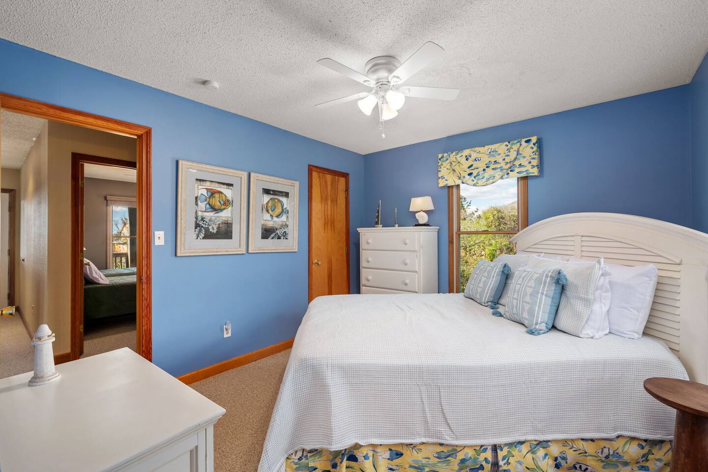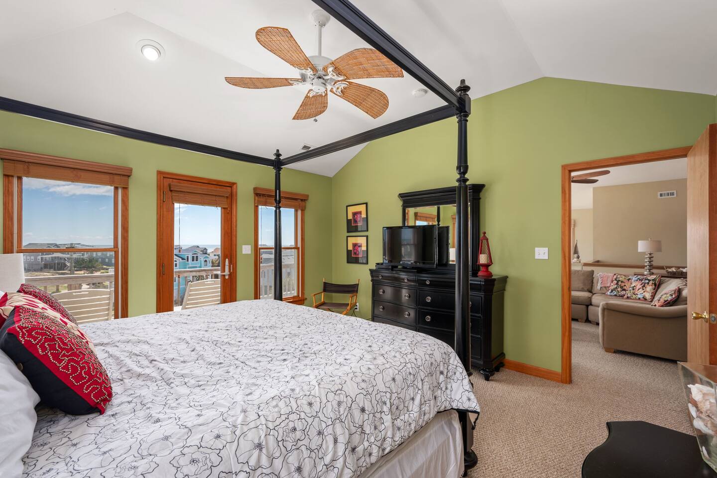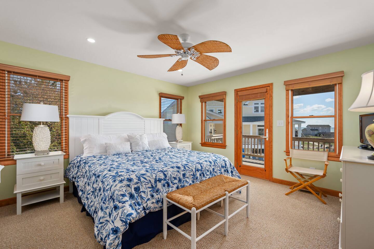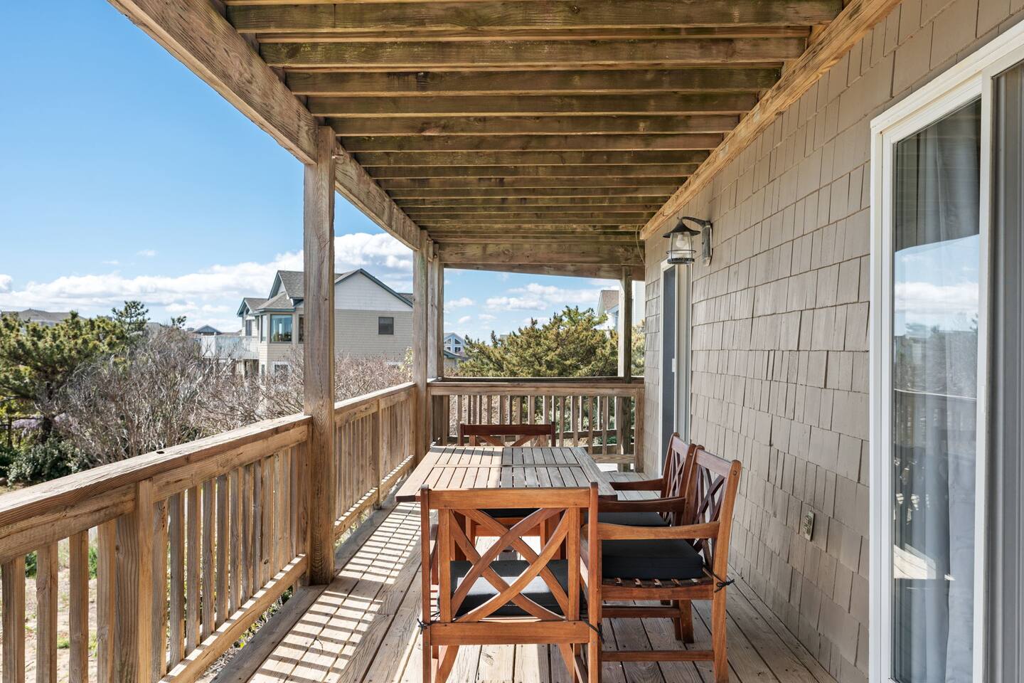 🌊 Soak up panoramic views of the Atlantic from sunrise to starry skies 🛍️ Just minutes to Downtown Duck’s shops, restaurants, boardwalk, and more 📍 Centrally located – easy to explore north to Corolla & Carova or south to Kitty Hawk & Kill Devil Hills 🌅 Enjoy access to both the Sound and the Ocean in the welcoming Carolina Dunes community 🏡 Spacious and comfortable – ideal for families or groups of friends looking to relax and reconnect Walk up one flight of stairs to the second story level where four of the five bedrooms are located. Go up one more level to the open dining, living, well outfitted kitchen, and master suite at top level of the home. Two levels of decks facing the ocean for your maximum enjoyment of outdoors and the salty ocean breeze. The lower level deck does have coverage to provide a nice shady area to retreat to. The top deck is a great spot to soak up the rays! Four bedrooms have full ensuite bathrooms. The twin bedroom has access to a full hall bath. At top level off the dining room and close proximity to the porches is a half bath. At ground level outside under the home are additional shaded areas to retreat with swing, hammock, charcoal grill, etc.