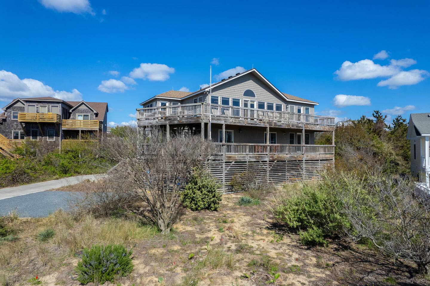 Ocean Views & OBX Adventure...Gather your crew and escape to this perfectly located Carolina Dunes beach house in charming Duck, NC — where wraparound decks and big windows deliver stunning ocean views from every angle! Whether you're planning beach days, sunset Sound side strolls, or sightseeing adventures across the Outer Banks, this is the perfect home base for unforgettable OBX memories. Book your stay today and experience coastal living with unbeatable views and location in Duck!