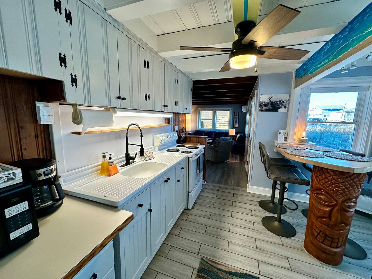 Vintage Charm & Ocean Views! Escape to this laid-back, ground-level surf shack on Beach Road in KDH, just steps from the Kitty Hawk line. Hear the ocean from your kitchen and living room, and enjoy private beach access just across the street. Built in 1955 with original knotty pine throughout, this cozy coastal gem blends warm, vintage charm with modern comfort. Perfect for surfing, relaxing, or exploring all the Outer Banks hotspots just minutes away! BONUS - Fido is welcome!