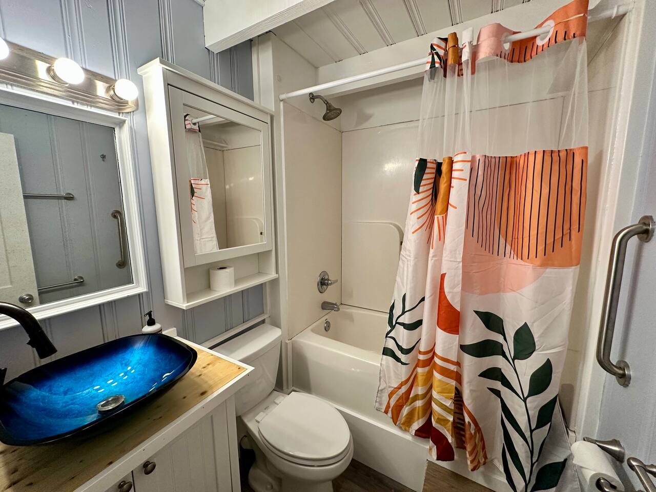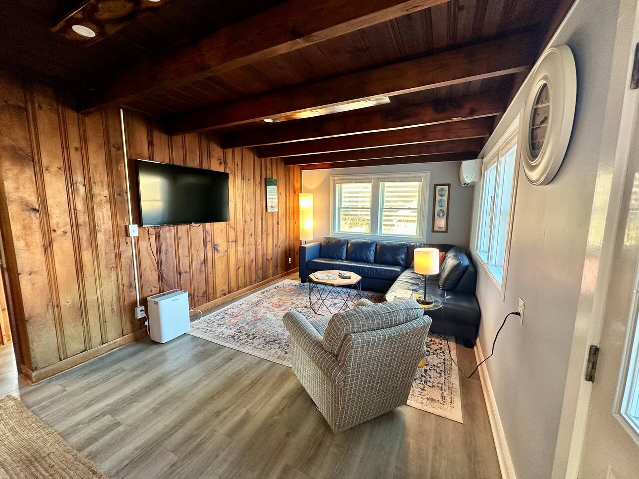 This space adopted a Blue Whale - Travel with Purpose when you stay with us and assist in global efforts to help save this beautiful endangered species! Bonus: Your four-legged friend is welcome too—this bungalow is pet-friendly! Kick back, soak in the surf vibes, and live the Sand Life. No steps to contend with! Covered Tiki bar and propane grill greet you at the entrance which leads into full size kitchen and dining area for four. Spacious living room with smart TV, large couch and rocking chair! Two bedrooms with dresser and closets in each! One king bed and one queen! Your own controlled AC/Heat in every room! One full bath with shower/tub combo (Note - there is one step up into tub). Parking for the Sand Life Pelican's Northern Nest is for 1-2 cars at max depending on the make/model of the vehicle. If your group is larger then 4 guests there are two other AirBNB spaces located on the property- one that accommodates 4 and the other accommodates 8. These two spaces are available to be rented separately! Inquire with your host if you are interested in these spaces as well! You can also view then under the host profile: Sand Life Pelican's Southern Nest (not pet friendly) & Sand Life Pelican's Upper Deck (not pet friendly).