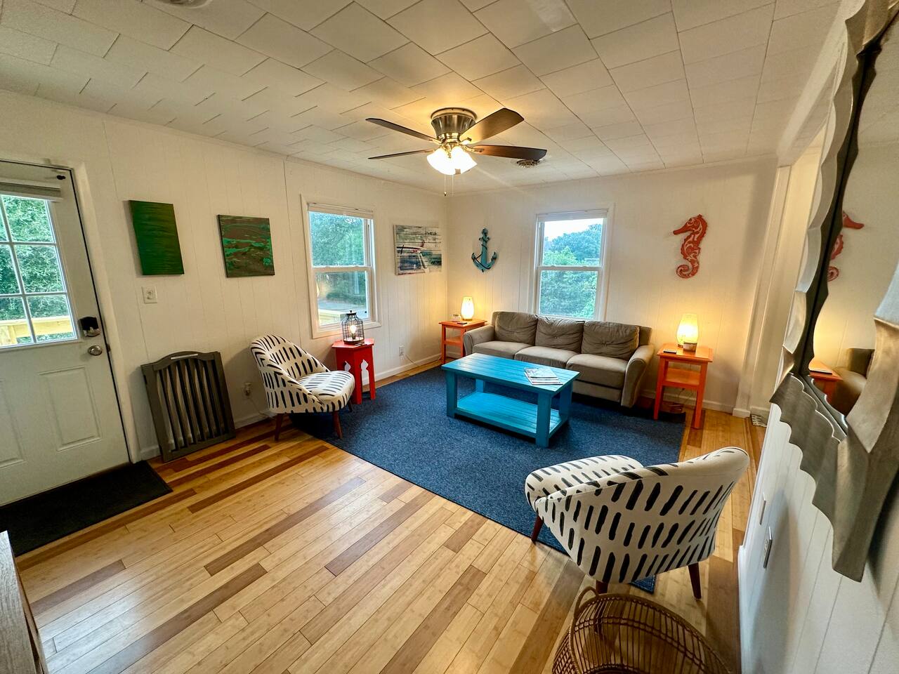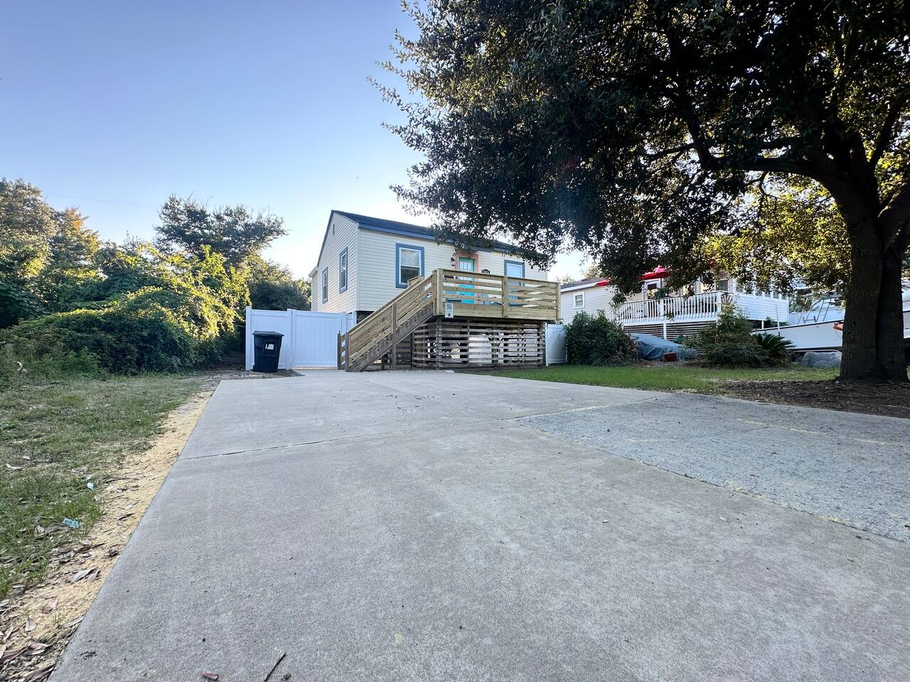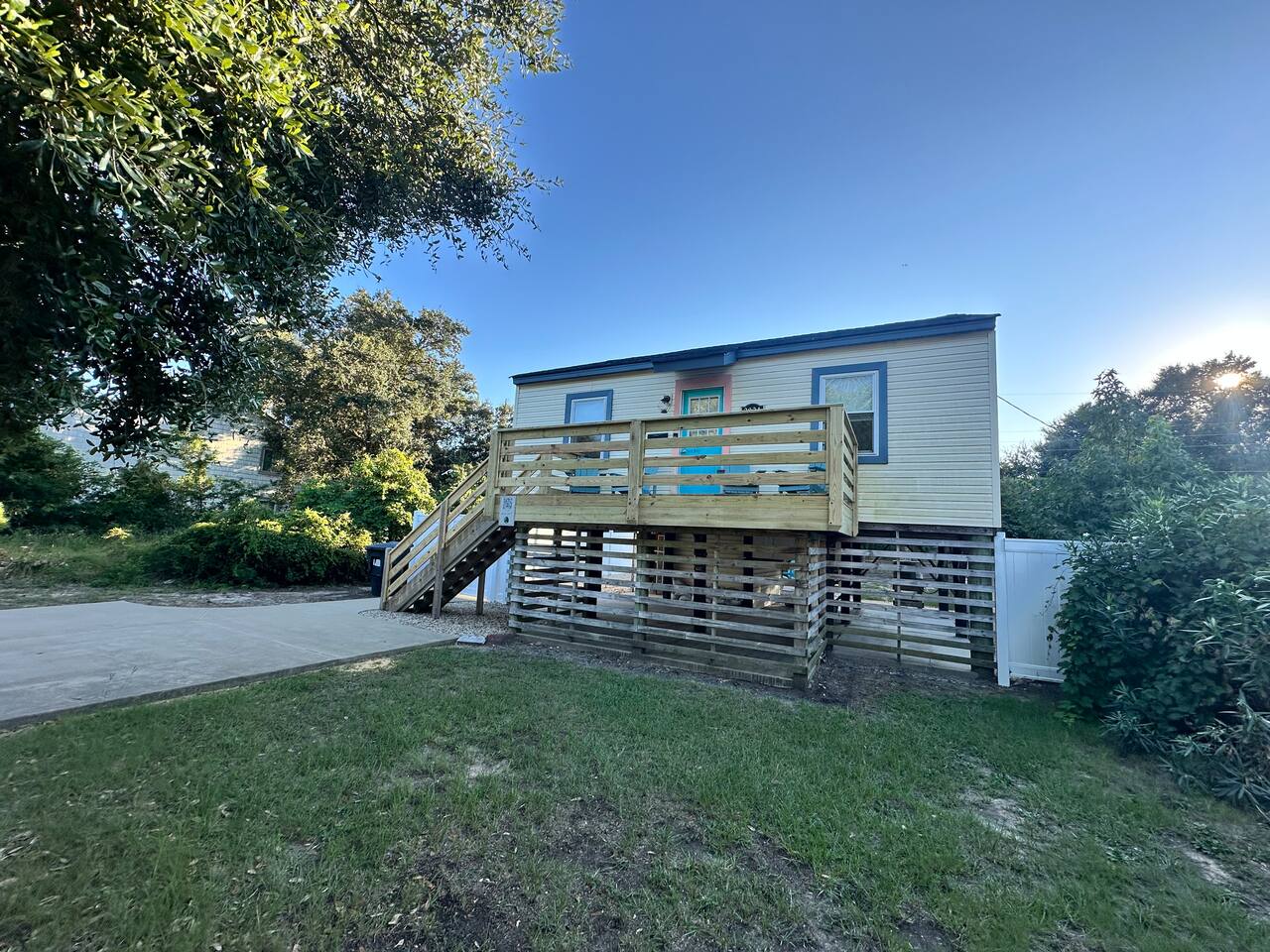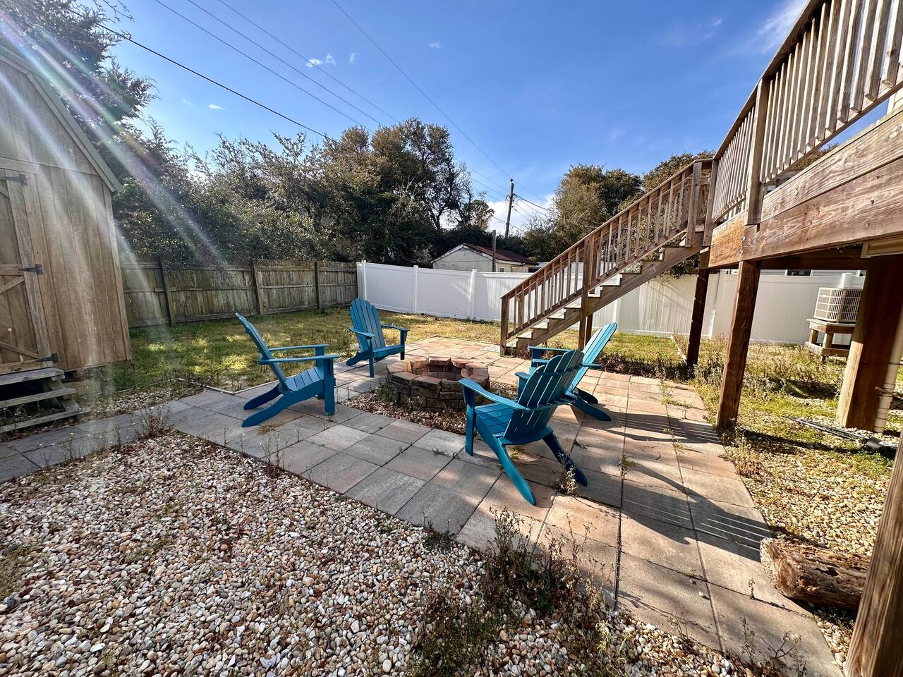 🚶♂️ Just 1 mile to the beach & 0.5 mile to the Sound – choose your vibe 🌅 Walk or bike the scenic paved path to the Wright Brothers Memorial or cruise into Kitty Hawk 🔥 Wind down in the large backyard with a cozy fire under the stars 🛍️ Surrounded by local restaurants, grocery stores, coffee shops, and plenty of free beach access points 🏠 Inside offers a simple, no-fuss layout – perfect for families, couples, or friends looking to relax and explore Go up one flight of stairs to front porch. As you enter the home you arrive in the living room - continue around to the left and you access the open kitchen/dining, washer and dryer, half bath and then a back door that leads onto the back porch with propane grill! If you bare right as you enter the home this will lead you to the full bath, and two bedrooms. Both bedrooms have smart TVs! Lots of space under the home to provide you shade to retreat to and an outdoor shower!