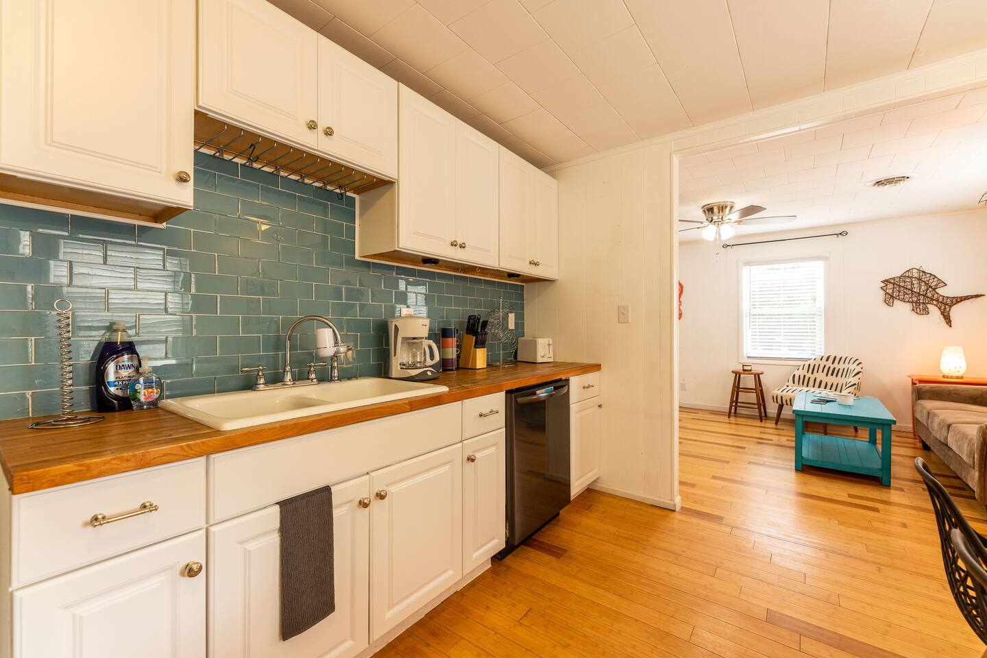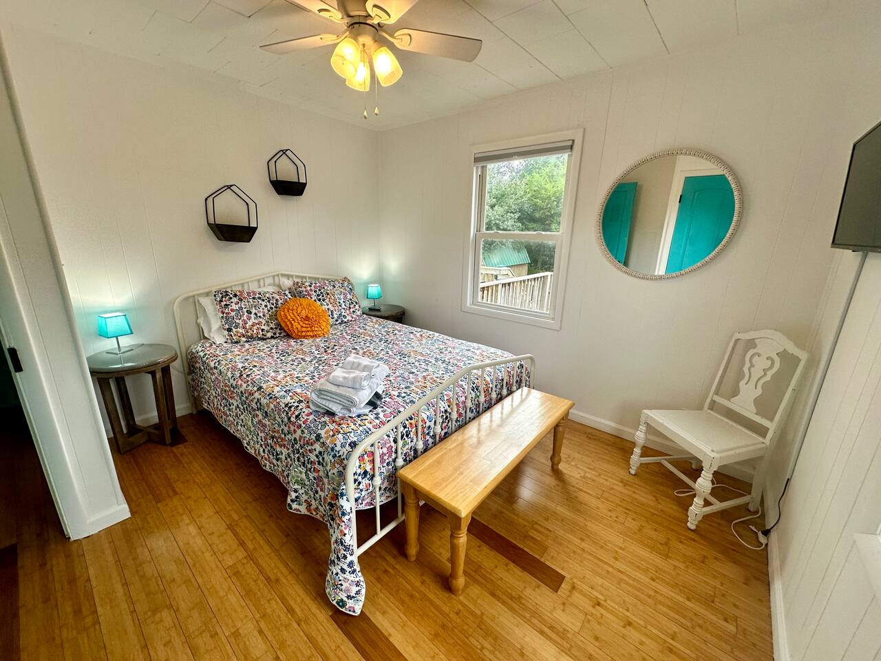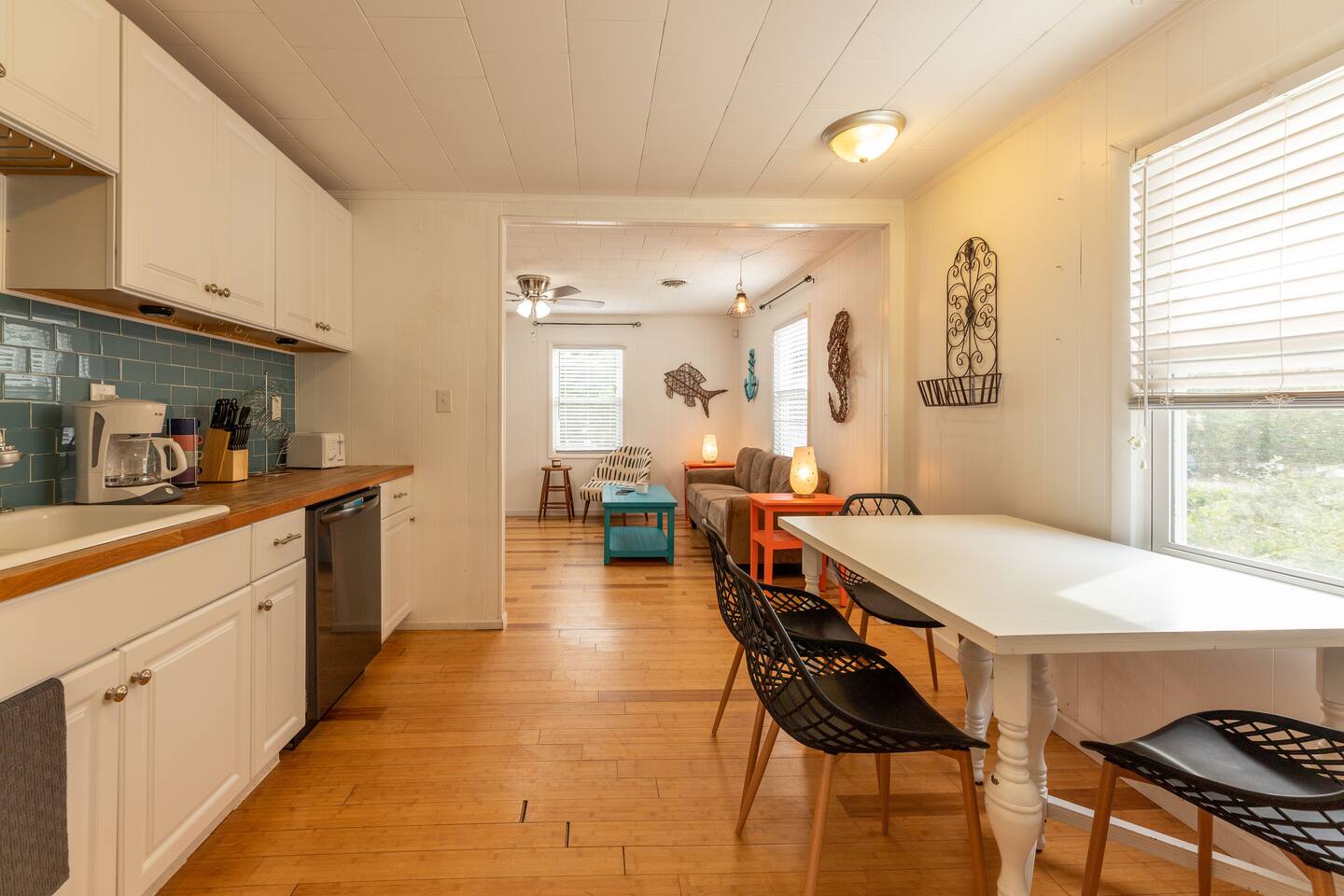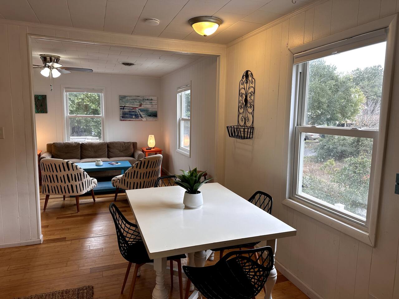 🚶♂️ Just 1 mile to the beach & 0.5 mile to the Sound – choose your vibe 🌅 Walk or bike the scenic paved path to the Wright Brothers Memorial or cruise into Kitty Hawk 🔥 Wind down in the large backyard with a cozy fire under the stars 🛍️ Surrounded by local restaurants, grocery stores, coffee shops, and plenty of free beach access points 🏠 Inside offers a simple, no-fuss layout – perfect for families, couples, or friends looking to relax and explore Go up one flight of stairs to front porch. As you enter the home you arrive in the living room - continue around to the left and you access the open kitchen/dining, washer and dryer, half bath and then a back door that leads onto the back porch with propane grill! If you bare right as you enter the home this will lead you to the full bath, and two bedrooms. Both bedrooms have smart TVs! Lots of space under the home to provide you shade to retreat to and an outdoor shower!