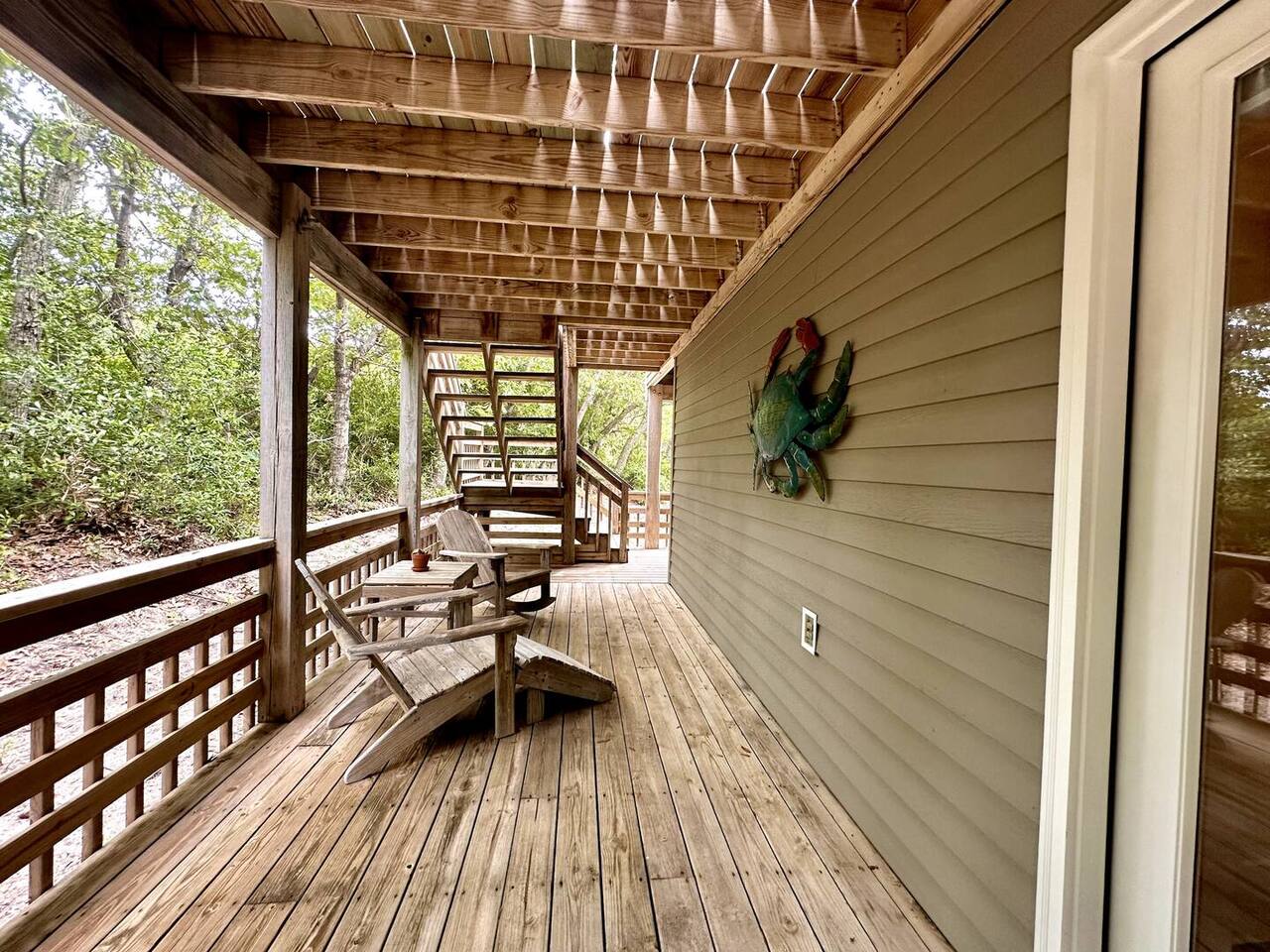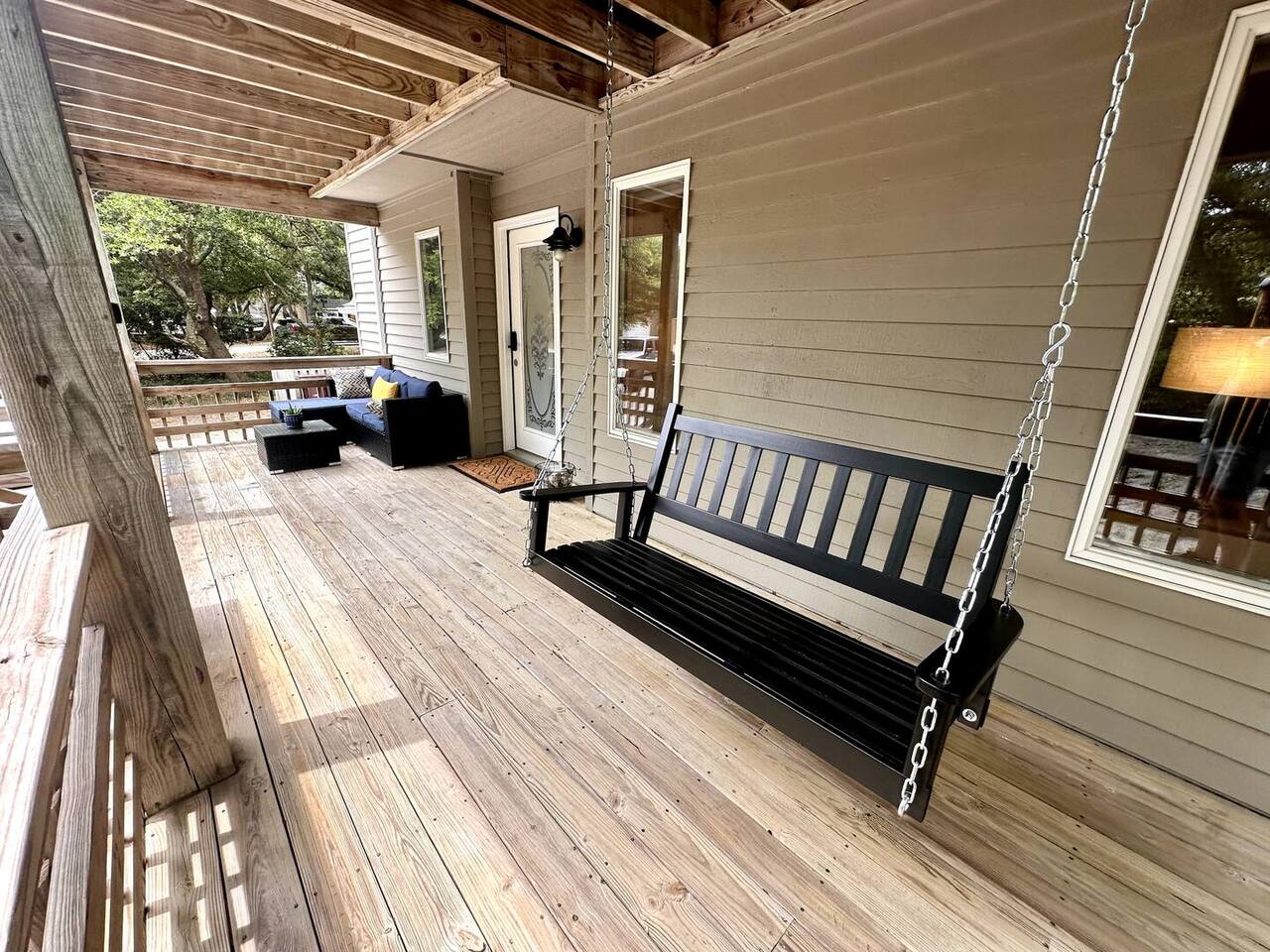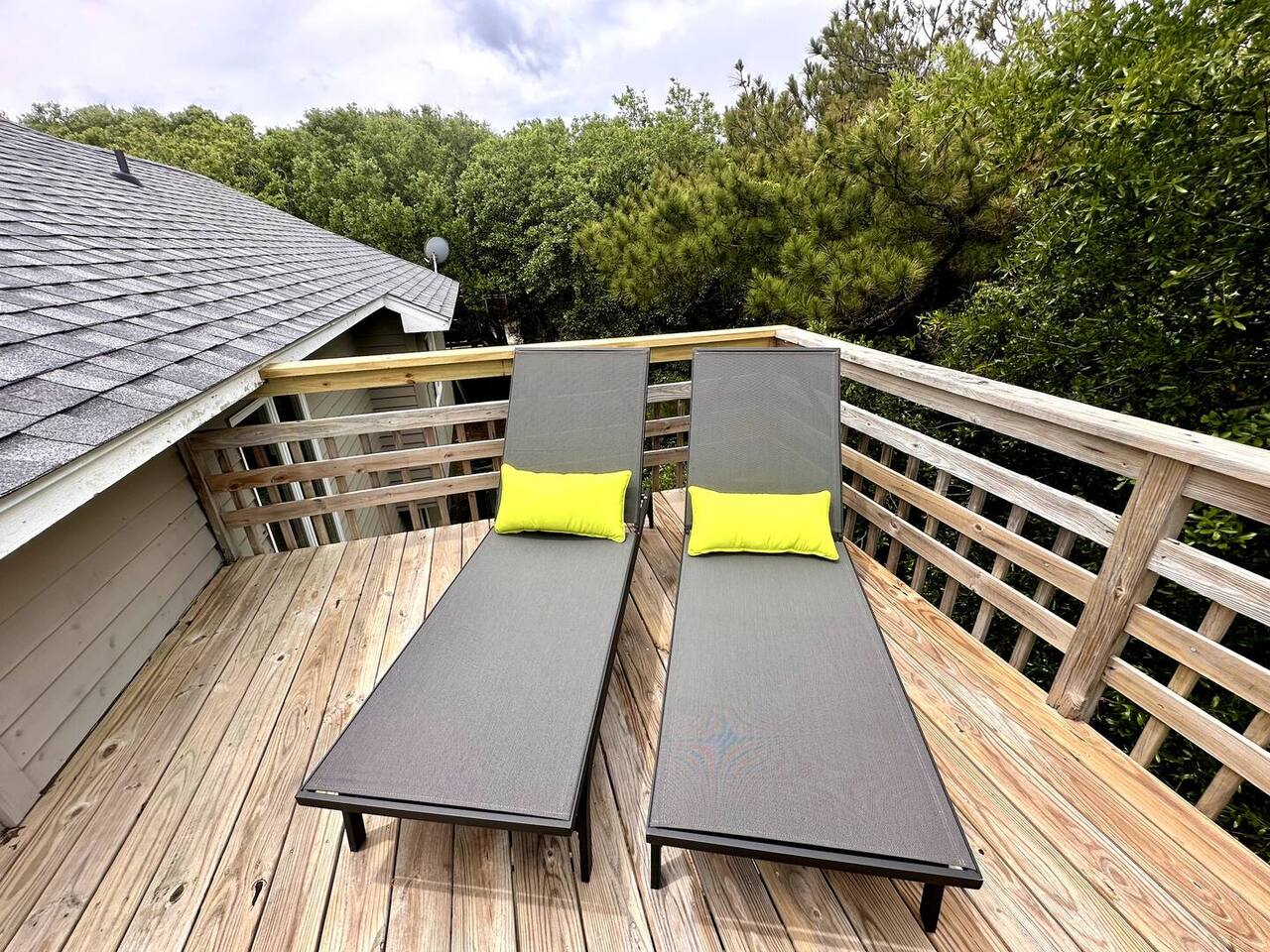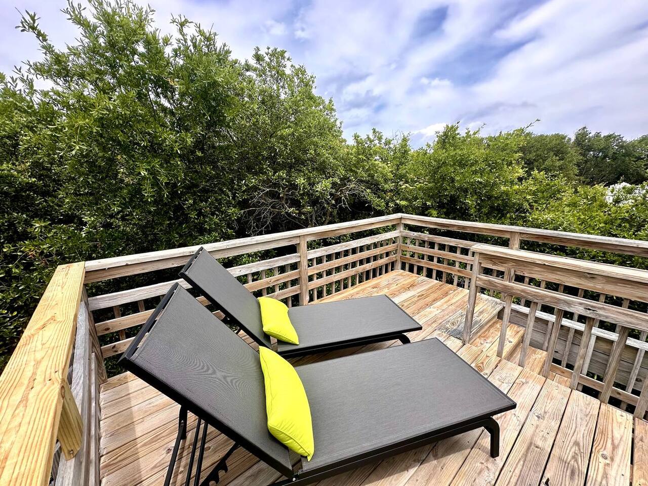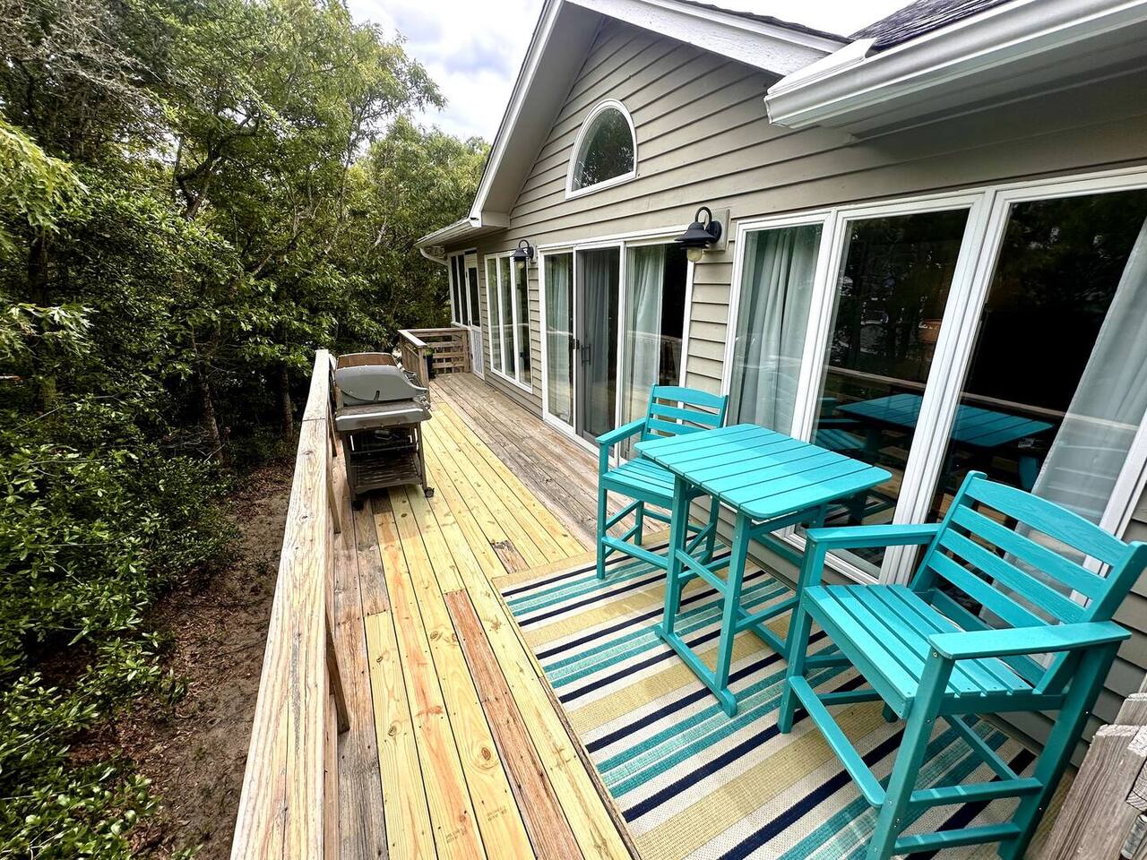 🌊 Toes in the sand in minutes – no driving or parking required 🏡 Never rented before 2024– everything is fresh, modern, and sparkling clean 🛍️ Walk or bike to restaurants, shops, and the iconic Kitty Hawk Pier 🌳 Quiet and private, yet close to everything the Outer Banks has to offer 🚲 Ideal launch point for exploring Duck, Kitty Hawk, Kill Devil Hills & more Walk up a short set of steps to a lower-level deck where the main entrance to home is located. The level you enter on has three bedrooms, one full bathroom, and laundry room with washer and dryer. The bedrooms on this level are two twin beds, one king, one queen. Go up one level to the spacious master bedroom suite located off the kitchen, living room, sunroom and additional half bath all located at this top level. Walk out the slider doors to another deck located on this middle level with a propane grill. Go up one more flight of stairs outside to another small deck perfect for privacy and sunbathing on the sun loungers! Outdoor shower located at ground level. BONUS - TVs located in all bedrooms and tons are outdoor furniture scattered throughout the decking for added areas to retreat to!