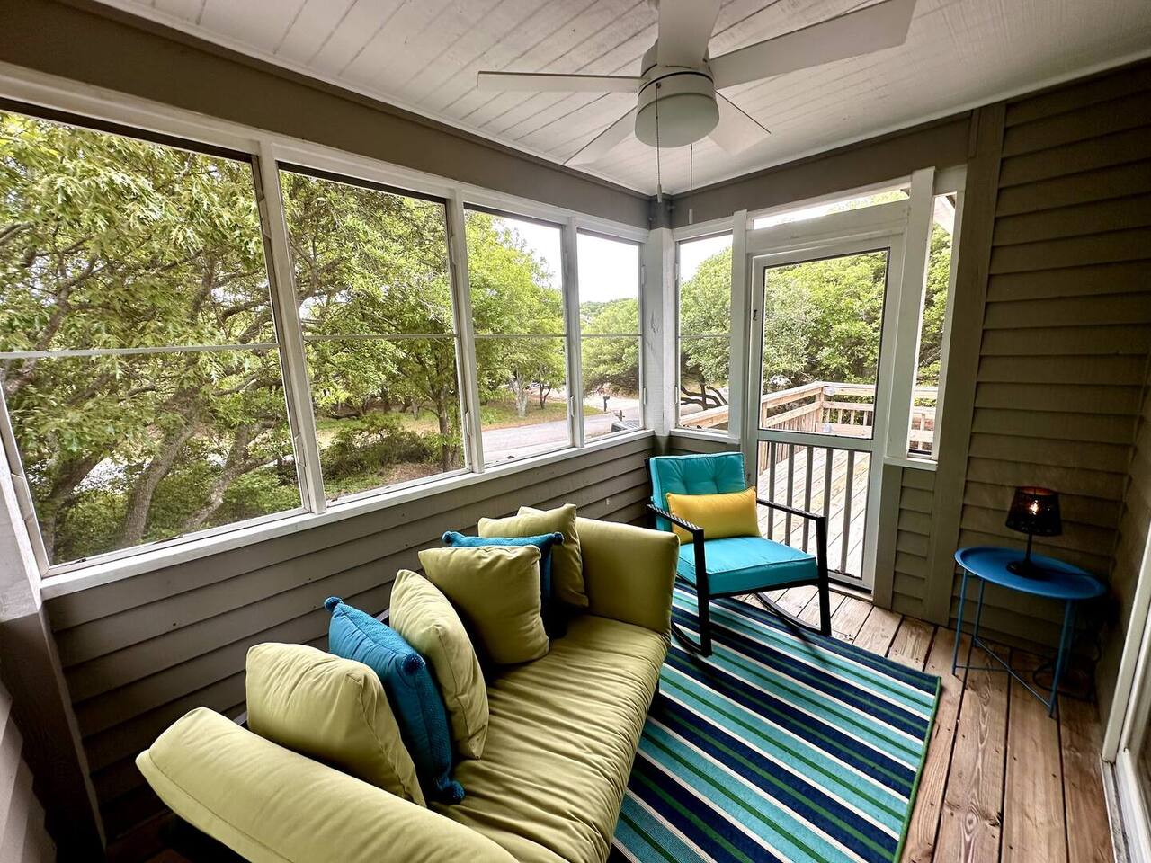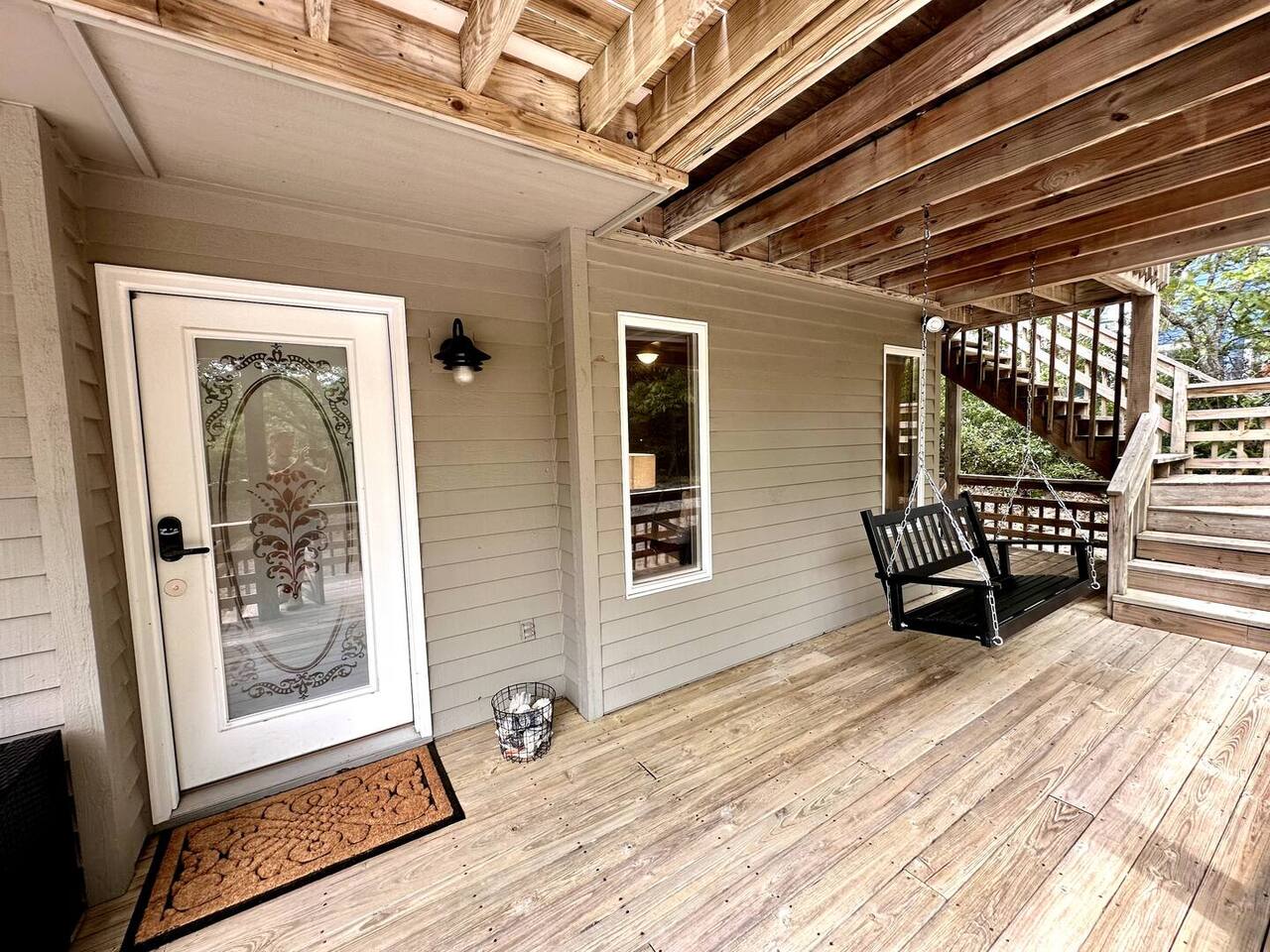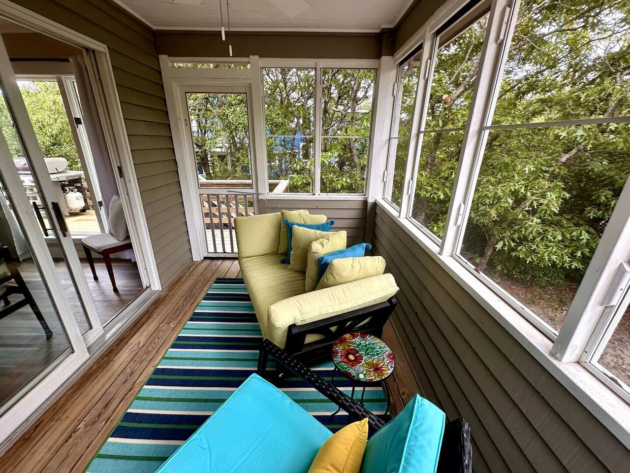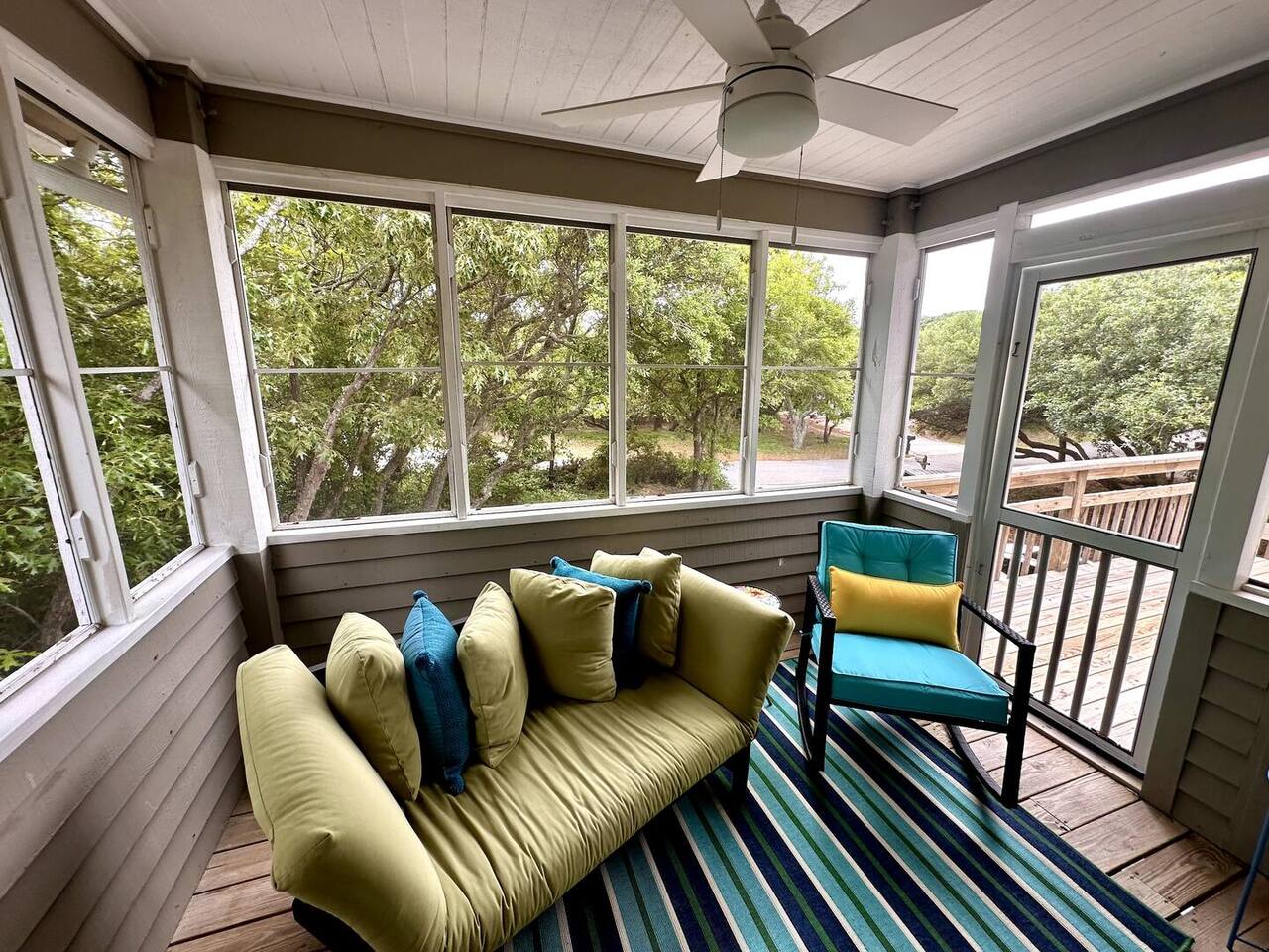 🌊 Toes in the sand in minutes – no driving or parking required 🏡 Never rented before 2024– everything is fresh, modern, and sparkling clean 🛍️ Walk or bike to restaurants, shops, and the iconic Kitty Hawk Pier 🌳 Quiet and private, yet close to everything the Outer Banks has to offer 🚲 Ideal launch point for exploring Duck, Kitty Hawk, Kill Devil Hills & more Walk up a short set of steps to a lower-level deck where the main entrance to home is located. The level you enter on has three bedrooms, one full bathroom, and laundry room with washer and dryer. The bedrooms on this level are two twin beds, one king, one queen. Go up one level to the spacious master bedroom suite located off the kitchen, living room, sunroom and additional half bath all located at this top level. Walk out the slider doors to another deck located on this middle level with a propane grill. Go up one more flight of stairs outside to another small deck perfect for privacy and sunbathing on the sun loungers! Outdoor shower located at ground level. BONUS - TVs located in all bedrooms and tons are outdoor furniture scattered throughout the decking for added areas to retreat to!