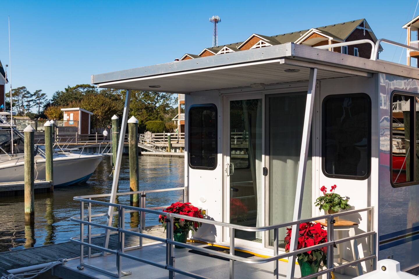 This space adopted a Whale Shark - Travel with Purpose when you stay with us and assist in global efforts to help save this beautiful endangered species! Please Note: Pool and Clubhouse (with pool table and gym) have the right to close or perform construction on these amenities at anytime. While this is a bonus to be used during your stay, please do not allow this to bear any weight on your experience with the space you are renting as this is not in our control. Shallowbag Bay Marina is a 75-slip marina located just off the intercoastal waterway in North Carolina's wonderful Outer Banks. The Outer Banks recreational area is one of the fastest growing coastal areas in the United States. The Outer Banks is characterized by barrier islands, natural beaches, sand dunes and beautiful marsh land areas. The Catamaran Cruiser includes all of the bare necessities one needs and all the comforts to give you that home away from home feeling...including an outdoor charcoal grill within the community!! Water Condo", "Floating Cottage", "Cabin on the Water" are typical descriptions of Catamaran Cruisers' newest houseboat concept has arrived in MANTEO, NC! Thoughtful custom design and beautifully finished inside and out, the Catamaran Cruiser features an open and bright main salon, while the master stateroom features a panoramic water view and a private deck. 2020 Smart TV in living room! 170 sq feet of outdoor decking! New technology toilet onboard! The shower amenities on-board are there for your convenience, just be mindful of your use when you are able! Hot water tank is 12 gallons and takes about 25 minutes to refill and therefore you may enjoy the amenities of in-ground plumbing at the easy to access just a few steps away clubhouse or ship store (total of 4 showers) if you enjoy longer showers and would rather all parties shower at the same time to expedite the getting ready process. If this is unclear, please do not hesitate to contact Host with any questions or concerns you may have! 🌊 Included with your stay: Two kayaks for exploring the serene sound A gift certificate to a local Kill Devil Hills restaurant Access to Salt & Cypress right on-site, enjoy eclectic cuisine and breathtaking waterfront dining just steps from your boat Whether you’re sipping wine on deck, paddling into the sunset, or dining with a view, The Love Boat offers a magical OBX experience you won’t find anywhere else. Float. Unplug. Reconnect. Book your waterfront escape today!