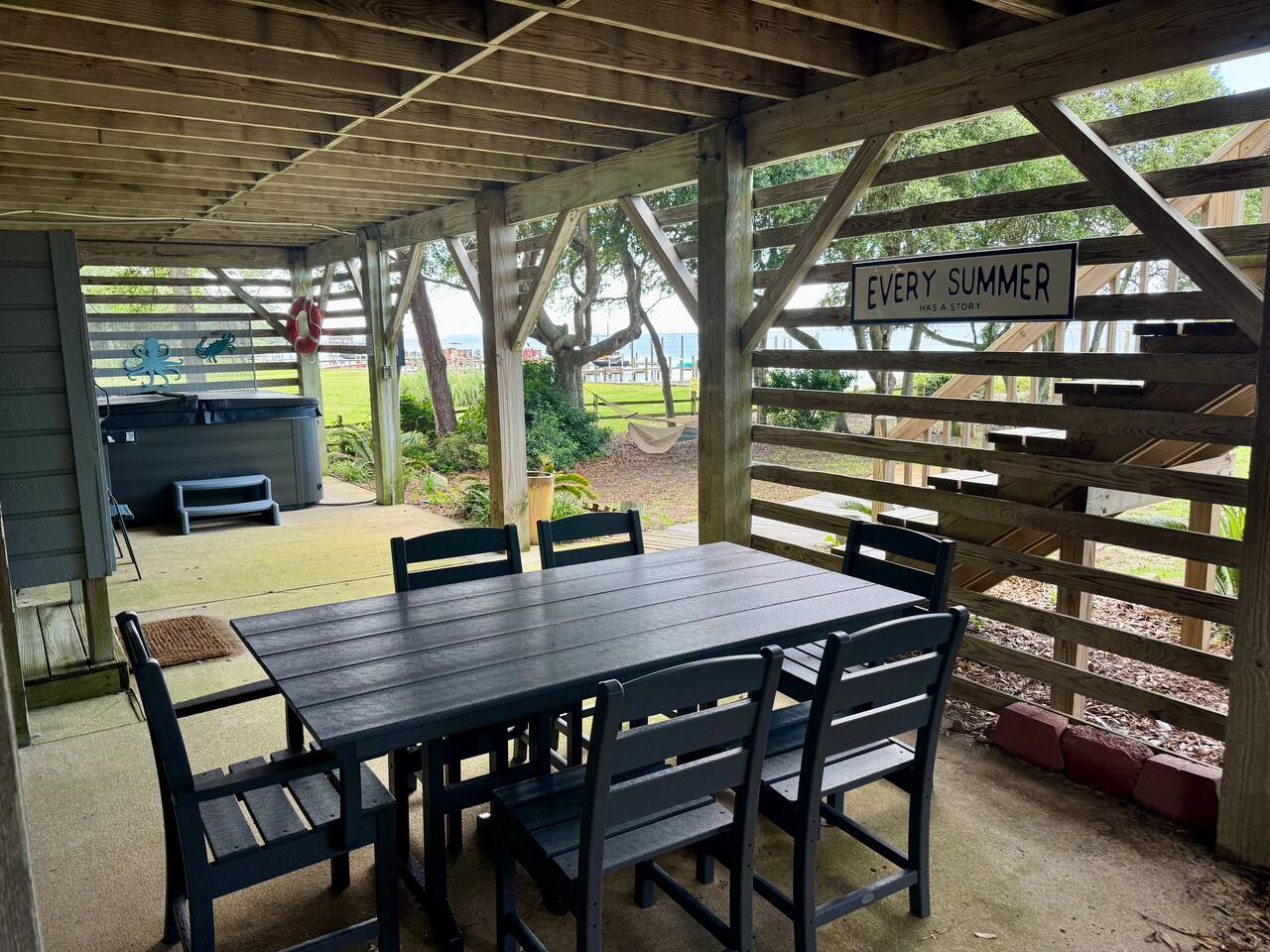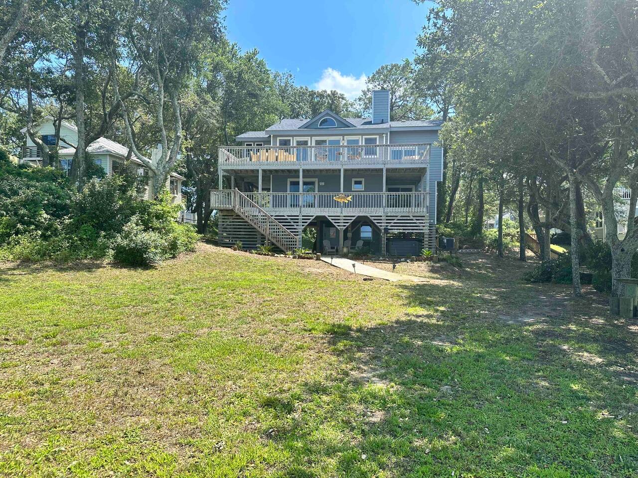 Donβt just visit the OBX β live it! Book now and start making those unforgettable memories... π€ Private boat dock β bring your kayak, paddleboard, or boat π₯ Hot tub & fire pit β unwind under the stars π Ping pong table & yard games β fun for everyone π Grill & patio furniture β perfect for laid-back BBQs π Multiple decks & a sunny bayfront yard β take in those epic sunsets πͺ Tons of windows, skylights & a cozy sunroom β bright, beachy vibes all day π Reading nook & stylish furnishings β your personal haven inside π½οΈ Fully equipped kitchen β ready for everything from quick breakfasts to seafood feasts Our home includes 4 bedrooms, 2 bathrooms, sunroom, large living room, dining area, full kitchen, and plenty of deck and yard to enjoy the outside! Top (second) level has master bedroom with attached full bathroom also accessible to the living room, kitchen and dining areas. First level is where the remaining three bedrooms are located along with full bathroom and laundry. There is a hot tub, outdoor shower, ping pong table and corn hole all located at ground level. large dock for enjoyment on the water! BONUS - two kayaks for your enjoyment!!