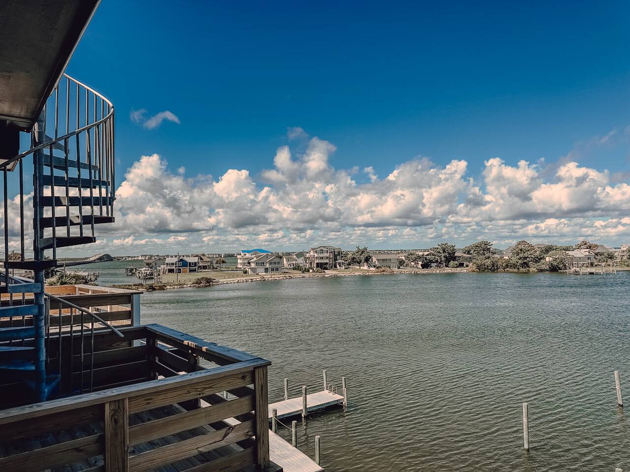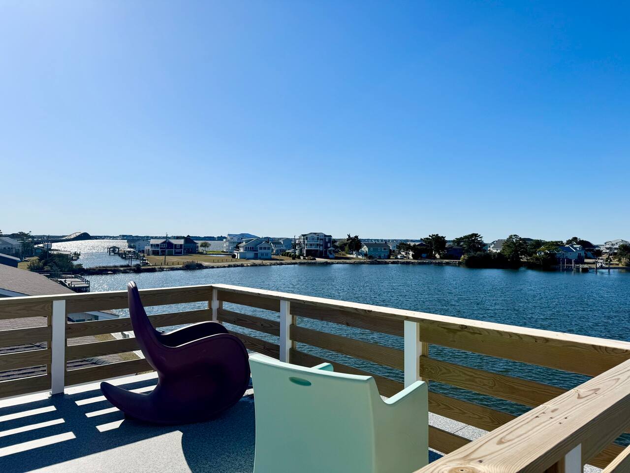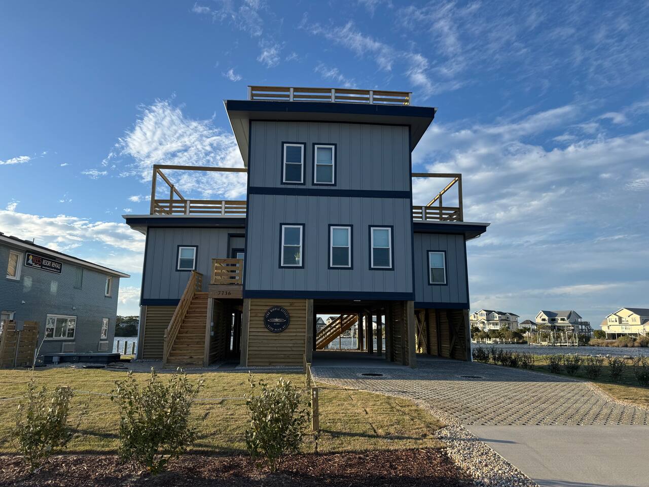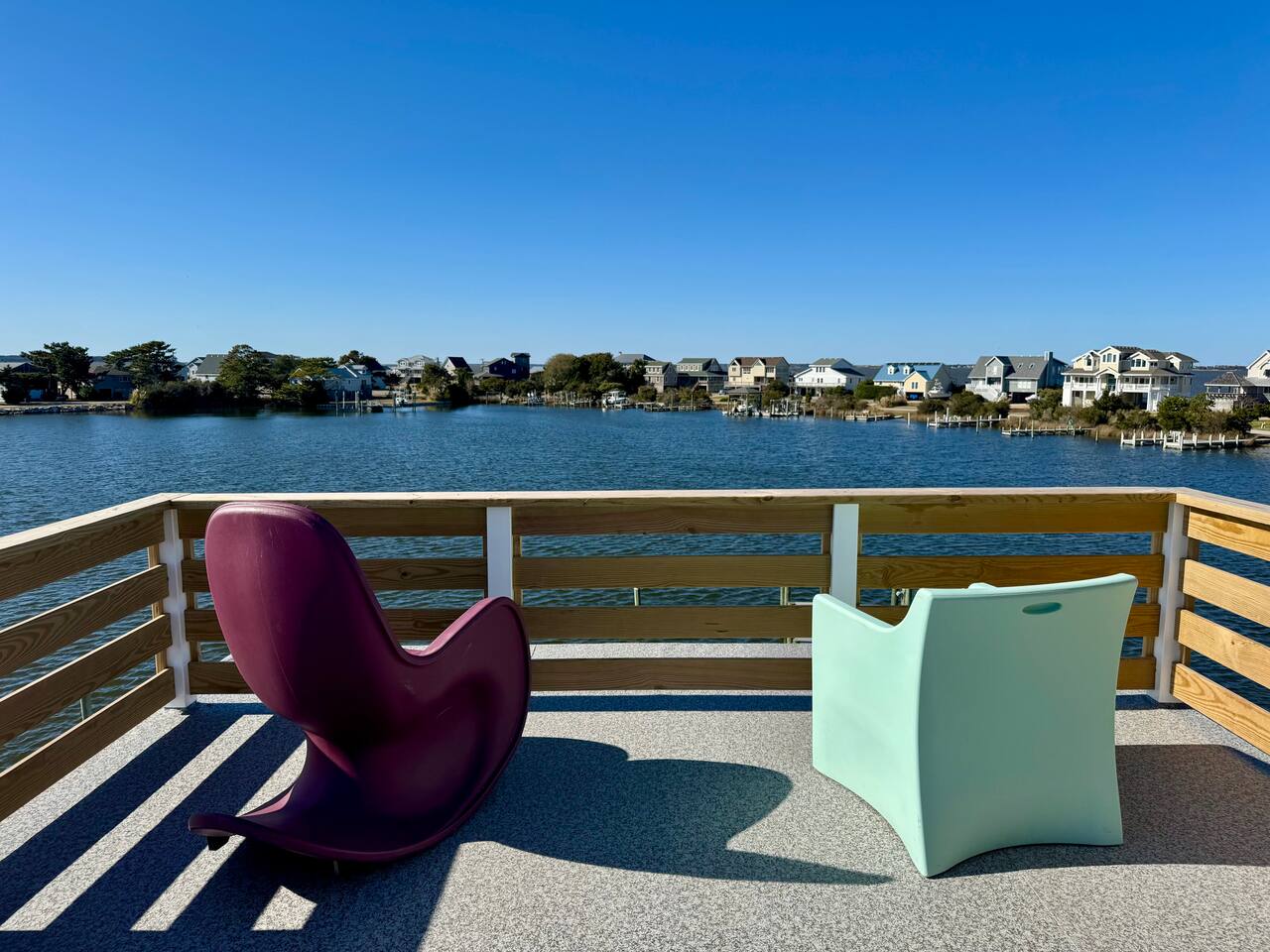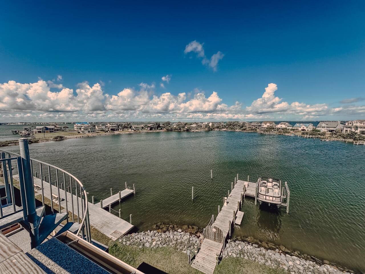 This home adopted a Sea Turtle Hatchling - Travel with Purpose when you stay with us and assist in global efforts to help save this beautiful endangered species! Book your stay now & be among the first to experience this brand-new OBX gem – adventure, serenity, & salty breezes await... 💦 Water, water everywhere! Fish, crab, or launch your kayak right from your private dock 🚤 Quick boat access to some of the best offshore fishing on the East Coast 🏖️ Just 1.6 miles to the beach for sun-soaked days in the sand 🌅 Only 4 miles to historic Downtown Manteo – go by car or boat! 🌉 Located right on the scenic Causeway – centrally placed to explore all of the OBX In the Spirit of Nags Head - As you pull into the driveway there is parking that leads you under the home. There is an outdoor shower located here for your convenience to rinse off outside prior to going in after an enjoyable day at the beach or after a day on your boat! Go up one flight of stairs to the main entrance. This leads you into the level with 4 bedrooms each with their own attached bathroom, king bed and tiled shower! Two of the larger suites have a wet bar as well for your added enjoyment! One of the larger suites has a spacious desk with printer to keep you productive while away! Three of the four bedrooms have slider doors that lead out to the deck facing Pond Island! Washer and dryer located on the bedroom level. Go up one internal flight of stairs to the top-level open concept Living room and eat-in well stocked kitchen with custom made live edge dining table! Large couch and two swivel chairs to accommodate eight in the living room with large flat screen TV above the gas fireplace. Open shelving kitchen with stainless appliances with a bonus second fridge to house your drinks or catered items! Coffee bar and Half bath also located on this level! Panoramic water views from every angle and therefore no window treatments needed at top level! Slider door from the living room takes you to another level of decking along with a spiral staircase to take you to the very top deck for more unobstructed views - the Town of Manteo, Jockeys Ridge, Jeanette’s Pier, the Bodie Lighthouse, watch the fishermen drive back to their slip in the distance as they head towards the Marc Basnight bridge, the views are endless! Inside of house is just under 2000 square feet; however, enjoy 3000 square feet of rooftop and deck!