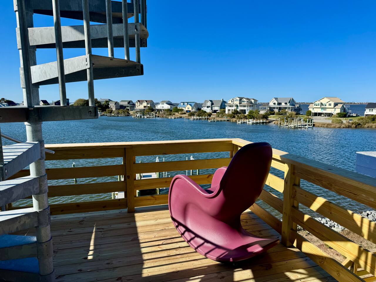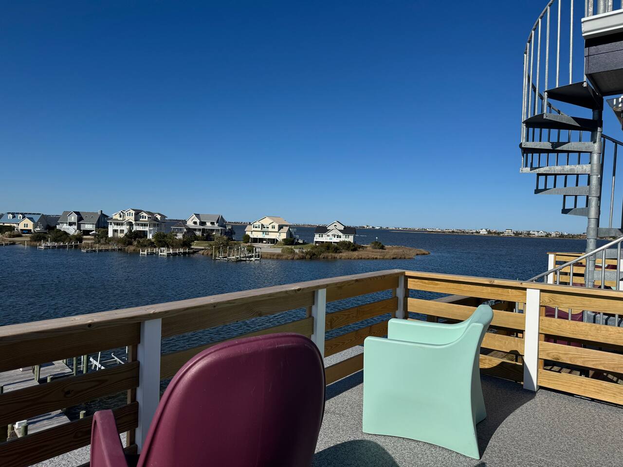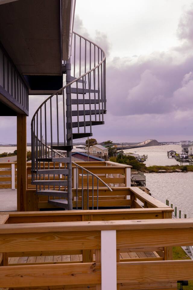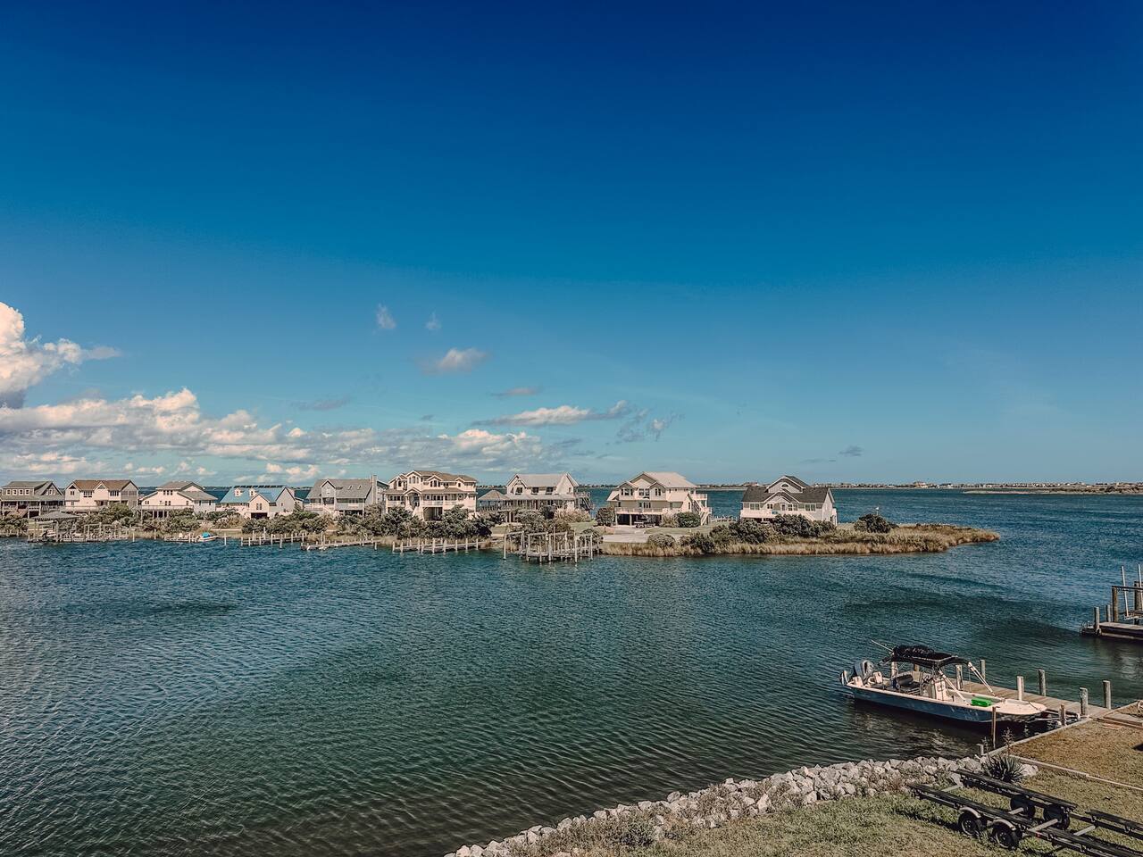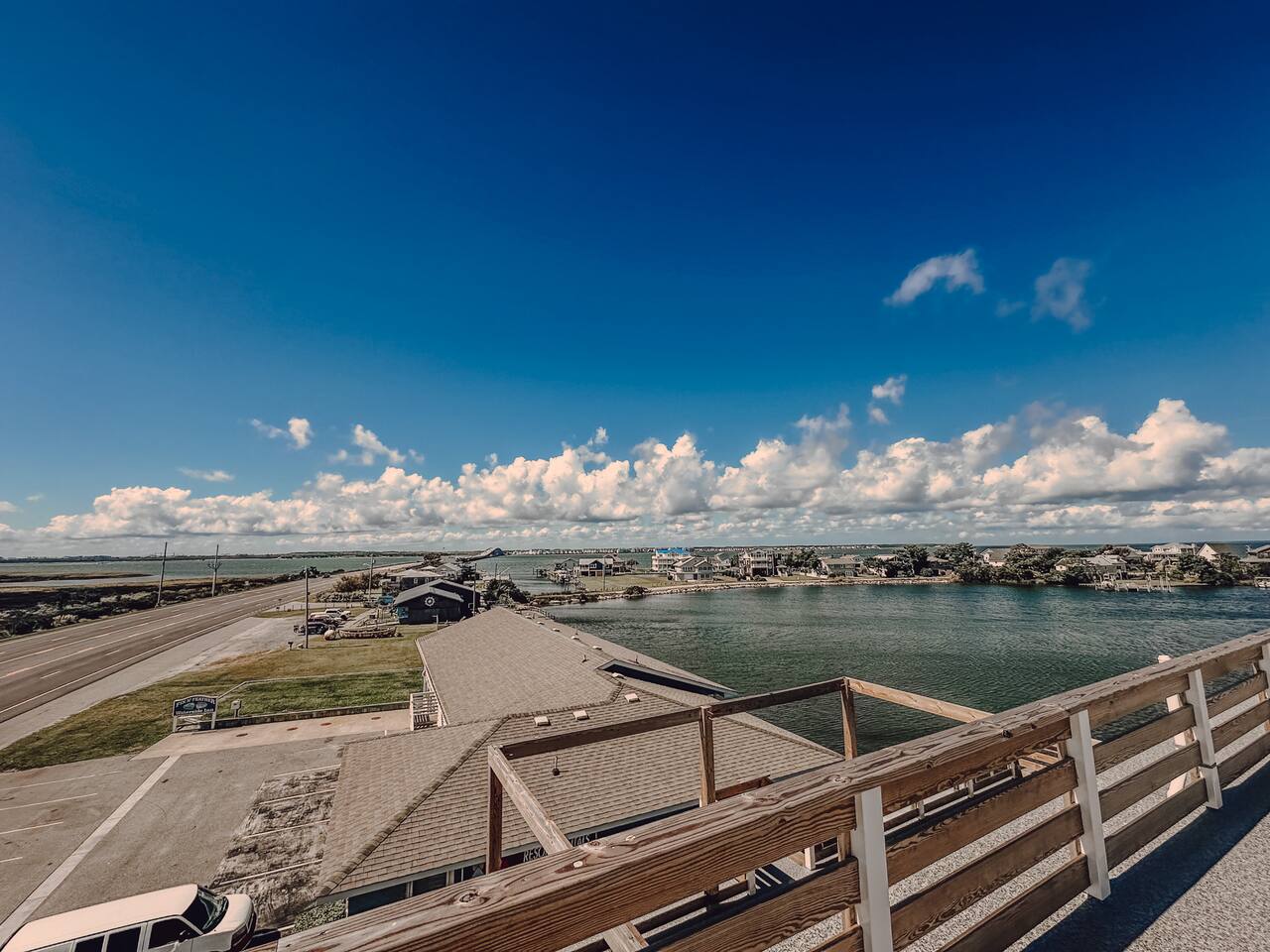 This home adopted a Sea Turtle Hatchling - Travel with Purpose when you stay with us and assist in global efforts to help save this beautiful endangered species! Book your stay now & be among the first to experience this brand-new OBX gem – adventure, serenity, & salty breezes await... 💦 Water, water everywhere! Fish, crab, or launch your kayak right from your private dock 🚤 Quick boat access to some of the best offshore fishing on the East Coast 🏖️ Just 1.6 miles to the beach for sun-soaked days in the sand 🌅 Only 4 miles to historic Downtown Manteo – go by car or boat! 🌉 Located right on the scenic Causeway – centrally placed to explore all of the OBX In the Spirit of Nags Head - As you pull into the driveway there is parking that leads you under the home. There is an outdoor shower located here for your convenience to rinse off outside prior to going in after an enjoyable day at the beach or after a day on your boat! Go up one flight of stairs to the main entrance. This leads you into the level with 4 bedrooms each with their own attached bathroom, king bed and tiled shower! Two of the larger suites have a wet bar as well for your added enjoyment! One of the larger suites has a spacious desk with printer to keep you productive while away! Three of the four bedrooms have slider doors that lead out to the deck facing Pond Island! Washer and dryer located on the bedroom level. Go up one internal flight of stairs to the top-level open concept Living room and eat-in well stocked kitchen with custom made live edge dining table! Large couch and two swivel chairs to accommodate eight in the living room with large flat screen TV above the gas fireplace. Open shelving kitchen with stainless appliances with a bonus second fridge to house your drinks or catered items! Coffee bar and Half bath also located on this level! Panoramic water views from every angle and therefore no window treatments needed at top level! Slider door from the living room takes you to another level of decking along with a spiral staircase to take you to the very top deck for more unobstructed views - the Town of Manteo, Jockeys Ridge, Jeanette’s Pier, the Bodie Lighthouse, watch the fishermen drive back to their slip in the distance as they head towards the Marc Basnight bridge, the views are endless! Inside of house is just under 2000 square feet; however, enjoy 3000 square feet of rooftop and deck!