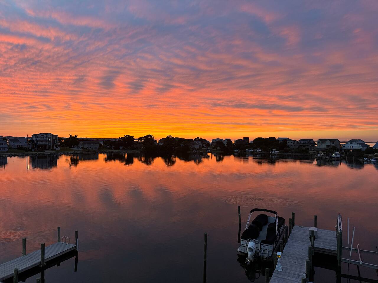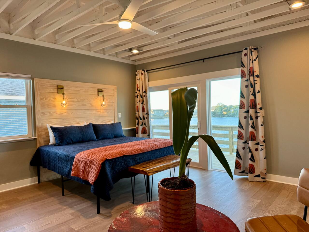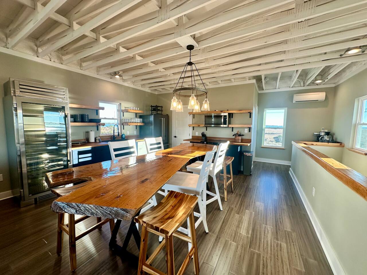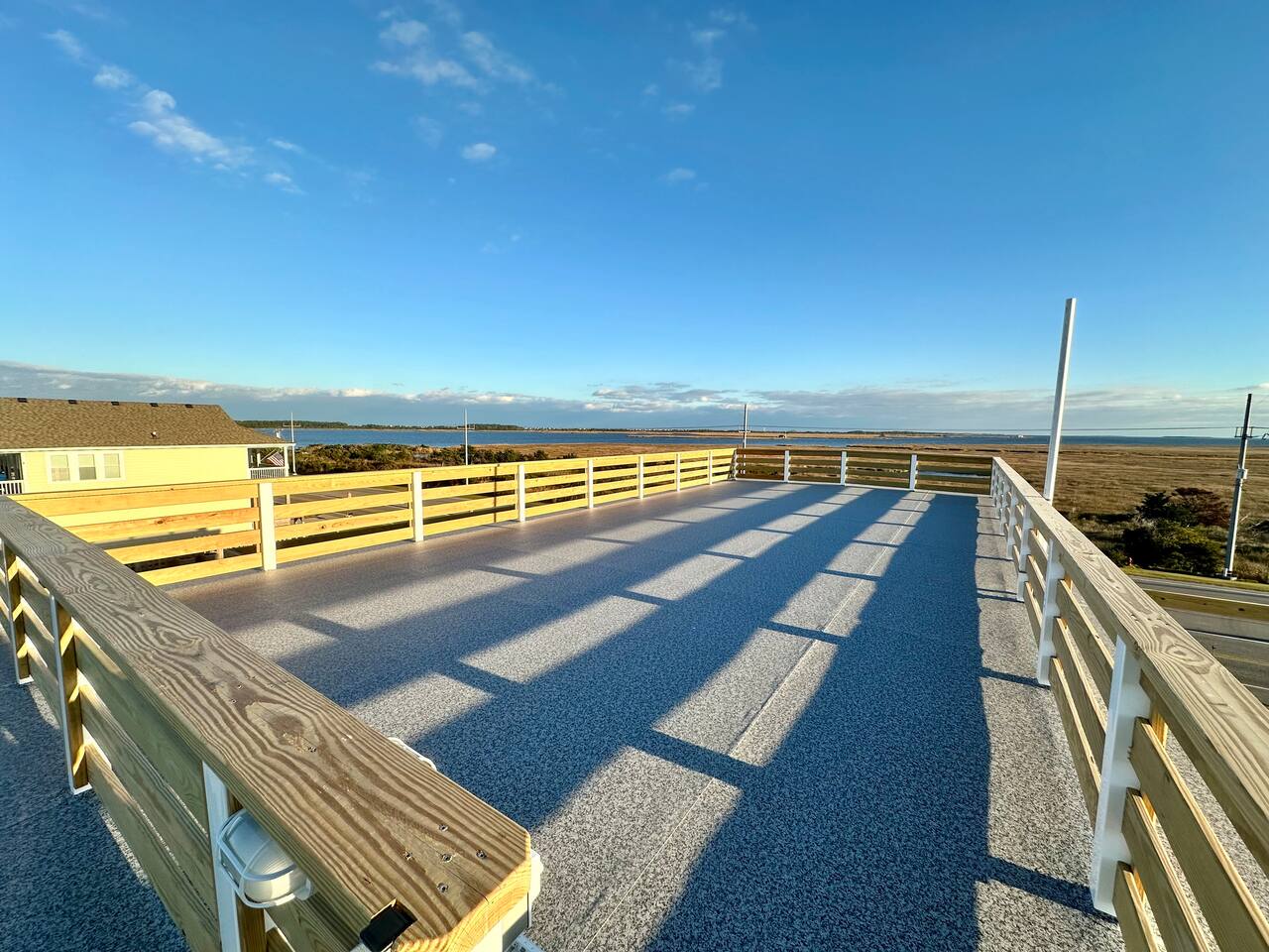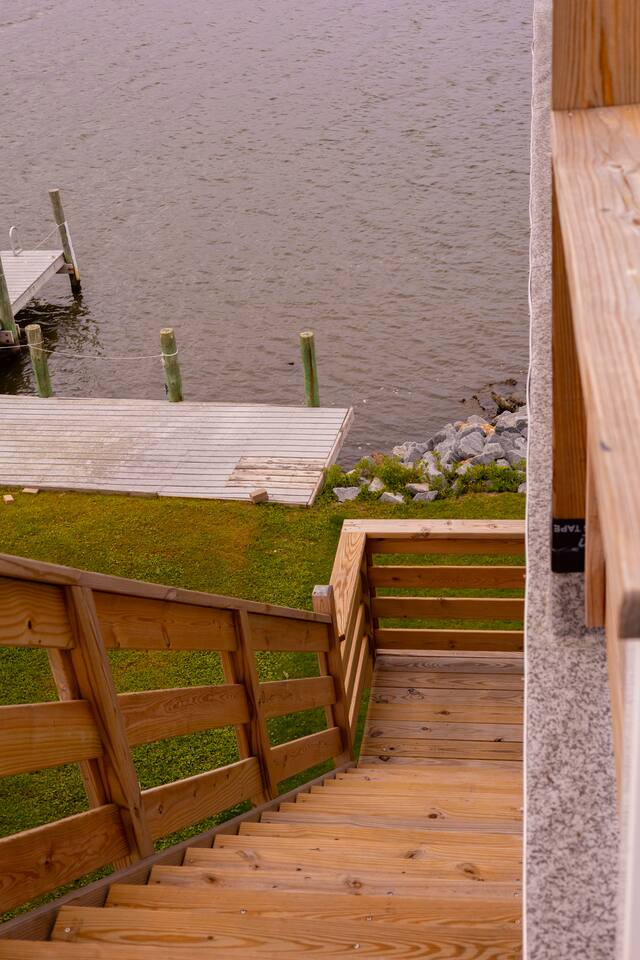This home adopted a Sea Turtle Hatchling - Travel with Purpose when you stay with us and assist in global efforts to help save this beautiful endangered species! Book your stay now & be among the first to experience this brand-new OBX gem – adventure, serenity, & salty breezes await... 💦 Water, water everywhere! Fish, crab, or launch your kayak right from your private dock 🚤 Quick boat access to some of the best offshore fishing on the East Coast 🏖️ Just 1.6 miles to the beach for sun-soaked days in the sand 🌅 Only 4 miles to historic Downtown Manteo – go by car or boat! 🌉 Located right on the scenic Causeway – centrally placed to explore all of the OBX In the Spirit of Nags Head - As you pull into the driveway there is parking that leads you under the home. There is an outdoor shower located here for your convenience to rinse off outside prior to going in after an enjoyable day at the beach or after a day on your boat! Go up one flight of stairs to the main entrance. This leads you into the level with 4 bedrooms each with their own attached bathroom, king bed and tiled shower! Two of the larger suites have a wet bar as well for your added enjoyment! One of the larger suites has a spacious desk with printer to keep you productive while away! Three of the four bedrooms have slider doors that lead out to the deck facing Pond Island! Washer and dryer located on the bedroom level. Go up one internal flight of stairs to the top-level open concept Living room and eat-in well stocked kitchen with custom made live edge dining table! Large couch and two swivel chairs to accommodate eight in the living room with large flat screen TV above the gas fireplace. Open shelving kitchen with stainless appliances with a bonus second fridge to house your drinks or catered items! Coffee bar and Half bath also located on this level! Panoramic water views from every angle and therefore no window treatments needed at top level! Slider door from the living room takes you to another level of decking along with a spiral staircase to take you to the very top deck for more unobstructed views - the Town of Manteo, Jockeys Ridge, Jeanette’s Pier, the Bodie Lighthouse, watch the fishermen drive back to their slip in the distance as they head towards the Marc Basnight bridge, the views are endless! Inside of house is just under 2000 square feet; however, enjoy 3000 square feet of rooftop and deck!