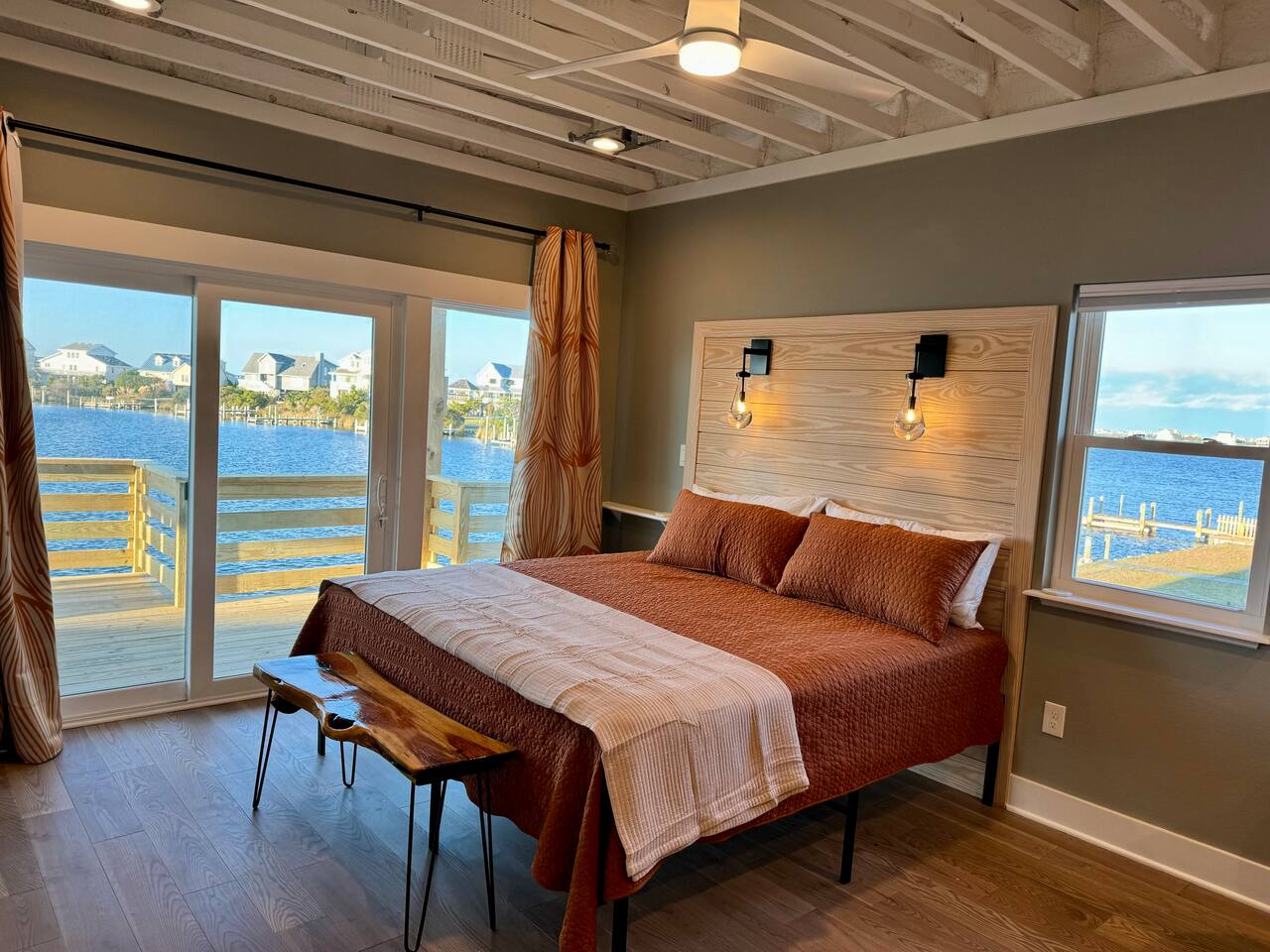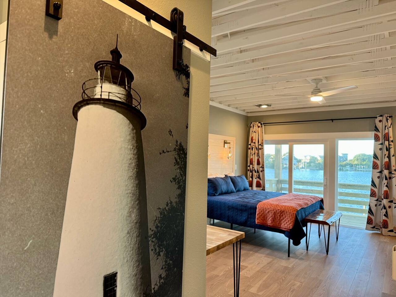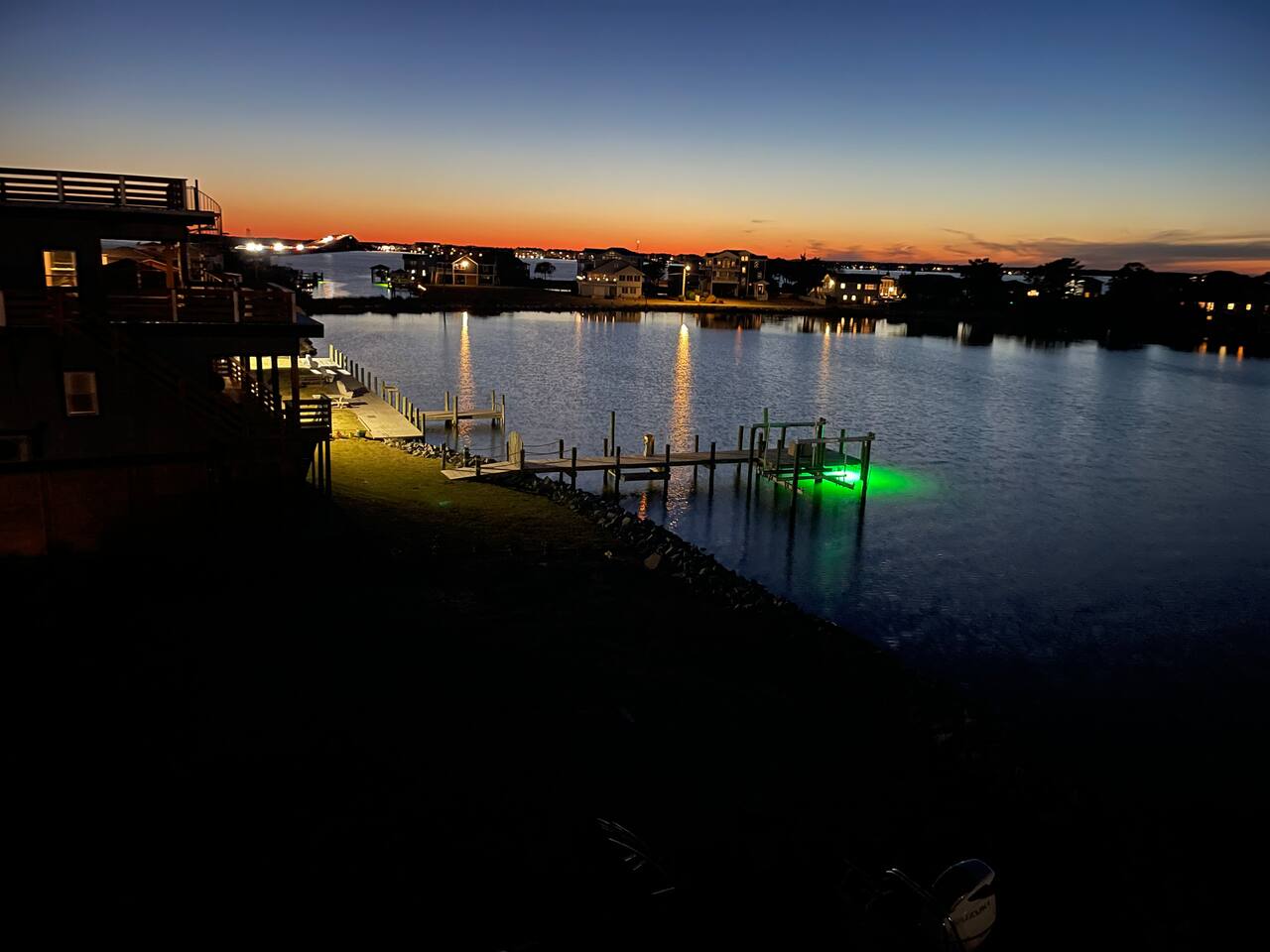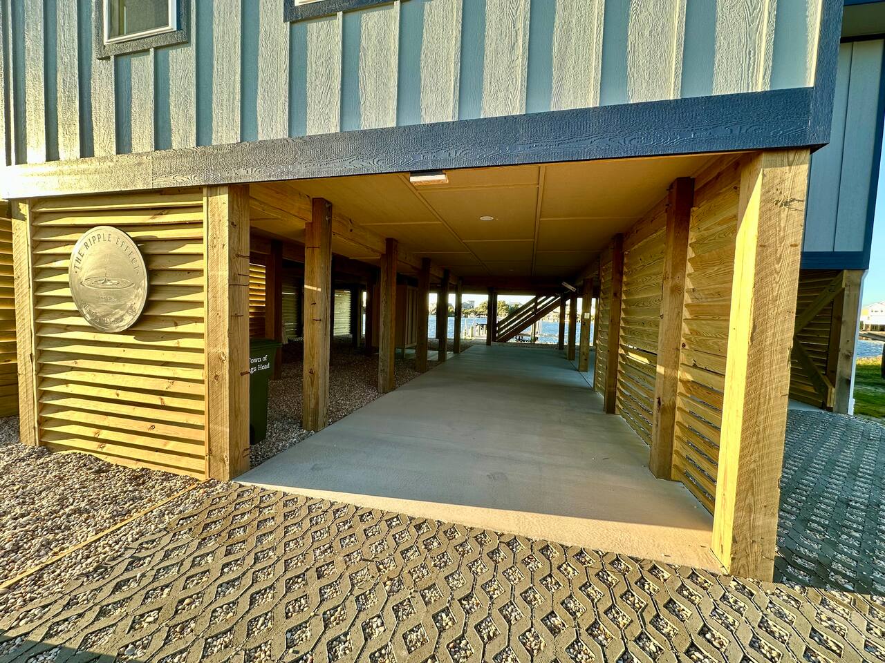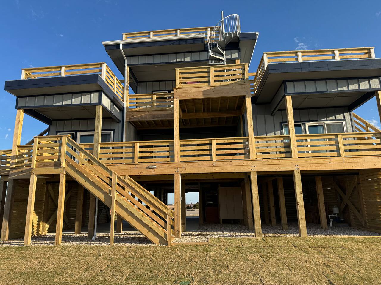 This home adopted a Sea Turtle Hatchling - Travel with Purpose when you stay with us and assist in global efforts to help save this beautiful endangered species! Book your stay now & be among the first to experience this brand-new OBX gem – adventure, serenity, & salty breezes await... 💦 Water, water everywhere! Fish, crab, or launch your kayak right from your private dock 🚤 Quick boat access to some of the best offshore fishing on the East Coast 🏖️ Just 1.6 miles to the beach for sun-soaked days in the sand 🌅 Only 4 miles to historic Downtown Manteo – go by car or boat! 🌉 Located right on the scenic Causeway – centrally placed to explore all of the OBX In the Spirit of Nags Head - As you pull into the driveway there is parking that leads you under the home. There is an outdoor shower located here for your convenience to rinse off outside prior to going in after an enjoyable day at the beach or after a day on your boat! Go up one flight of stairs to the main entrance. This leads you into the level with 4 bedrooms each with their own attached bathroom, king bed and tiled shower! Two of the larger suites have a wet bar as well for your added enjoyment! One of the larger suites has a spacious desk with printer to keep you productive while away! Three of the four bedrooms have slider doors that lead out to the deck facing Pond Island! Washer and dryer located on the bedroom level. Go up one internal flight of stairs to the top-level open concept Living room and eat-in well stocked kitchen with custom made live edge dining table! Large couch and two swivel chairs to accommodate eight in the living room with large flat screen TV above the gas fireplace. Open shelving kitchen with stainless appliances with a bonus second fridge to house your drinks or catered items! Coffee bar and Half bath also located on this level! Panoramic water views from every angle and therefore no window treatments needed at top level! Slider door from the living room takes you to another level of decking along with a spiral staircase to take you to the very top deck for more unobstructed views - the Town of Manteo, Jockeys Ridge, Jeanette’s Pier, the Bodie Lighthouse, watch the fishermen drive back to their slip in the distance as they head towards the Marc Basnight bridge, the views are endless! Inside of house is just under 2000 square feet; however, enjoy 3000 square feet of rooftop and deck!