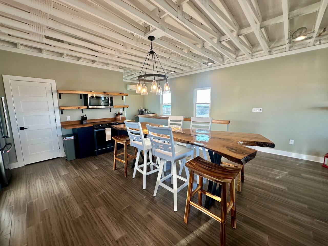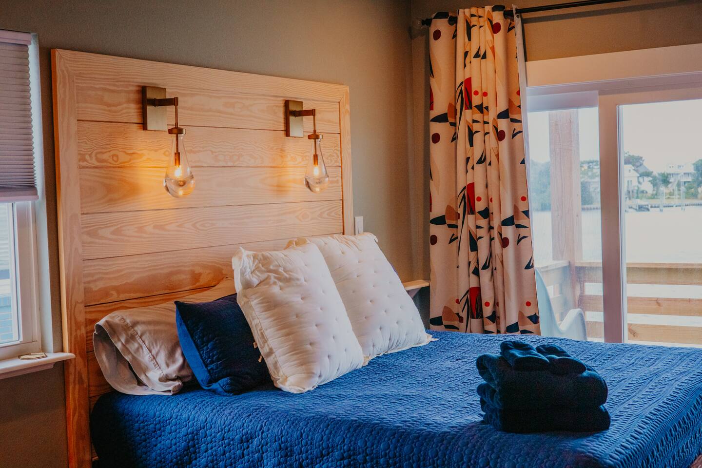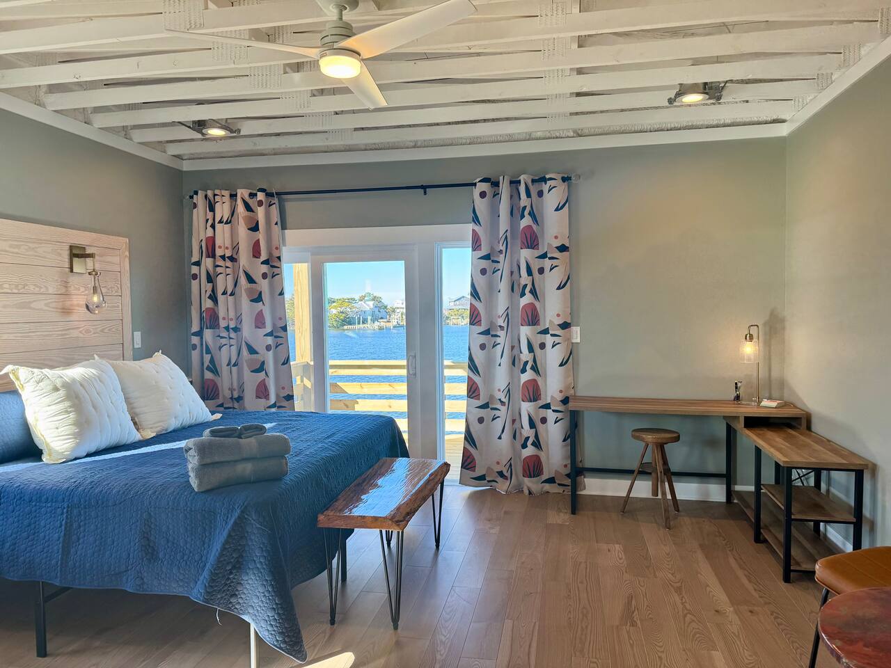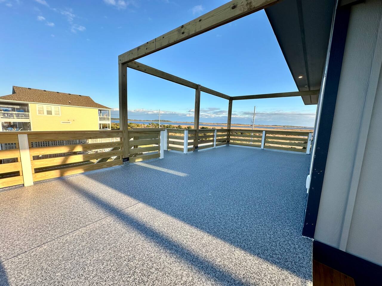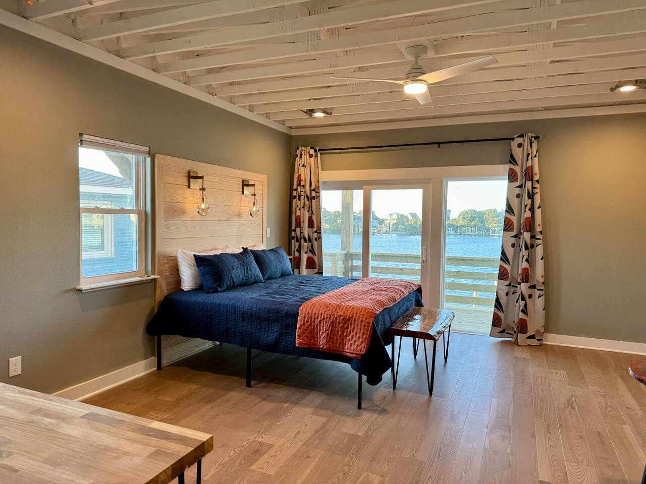 This home adopted a Sea Turtle Hatchling - Travel with Purpose when you stay with us and assist in global efforts to help save this beautiful endangered species! Book your stay now & be among the first to experience this brand-new OBX gem – adventure, serenity, & salty breezes await... 💦 Water, water everywhere! Fish, crab, or launch your kayak right from your private dock 🚤 Quick boat access to some of the best offshore fishing on the East Coast 🏖️ Just 1.6 miles to the beach for sun-soaked days in the sand 🌅 Only 4 miles to historic Downtown Manteo – go by car or boat! 🌉 Located right on the scenic Causeway – centrally placed to explore all of the OBX In the Spirit of Nags Head - As you pull into the driveway there is parking that leads you under the home. There is an outdoor shower located here for your convenience to rinse off outside prior to going in after an enjoyable day at the beach or after a day on your boat! Go up one flight of stairs to the main entrance. This leads you into the level with 4 bedrooms each with their own attached bathroom, king bed and tiled shower! Two of the larger suites have a wet bar as well for your added enjoyment! One of the larger suites has a spacious desk with printer to keep you productive while away! Three of the four bedrooms have slider doors that lead out to the deck facing Pond Island! Washer and dryer located on the bedroom level. Go up one internal flight of stairs to the top-level open concept Living room and eat-in well stocked kitchen with custom made live edge dining table! Large couch and two swivel chairs to accommodate eight in the living room with large flat screen TV above the gas fireplace. Open shelving kitchen with stainless appliances with a bonus second fridge to house your drinks or catered items! Coffee bar and Half bath also located on this level! Panoramic water views from every angle and therefore no window treatments needed at top level! Slider door from the living room takes you to another level of decking along with a spiral staircase to take you to the very top deck for more unobstructed views - the Town of Manteo, Jockeys Ridge, Jeanette’s Pier, the Bodie Lighthouse, watch the fishermen drive back to their slip in the distance as they head towards the Marc Basnight bridge, the views are endless! Inside of house is just under 2000 square feet; however, enjoy 3000 square feet of rooftop and deck!