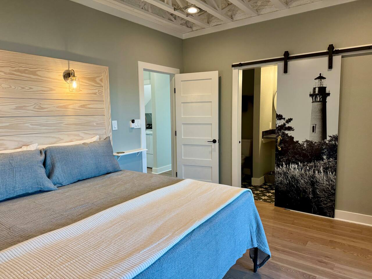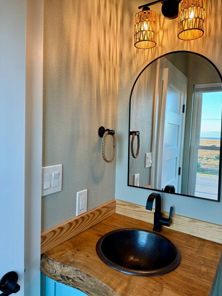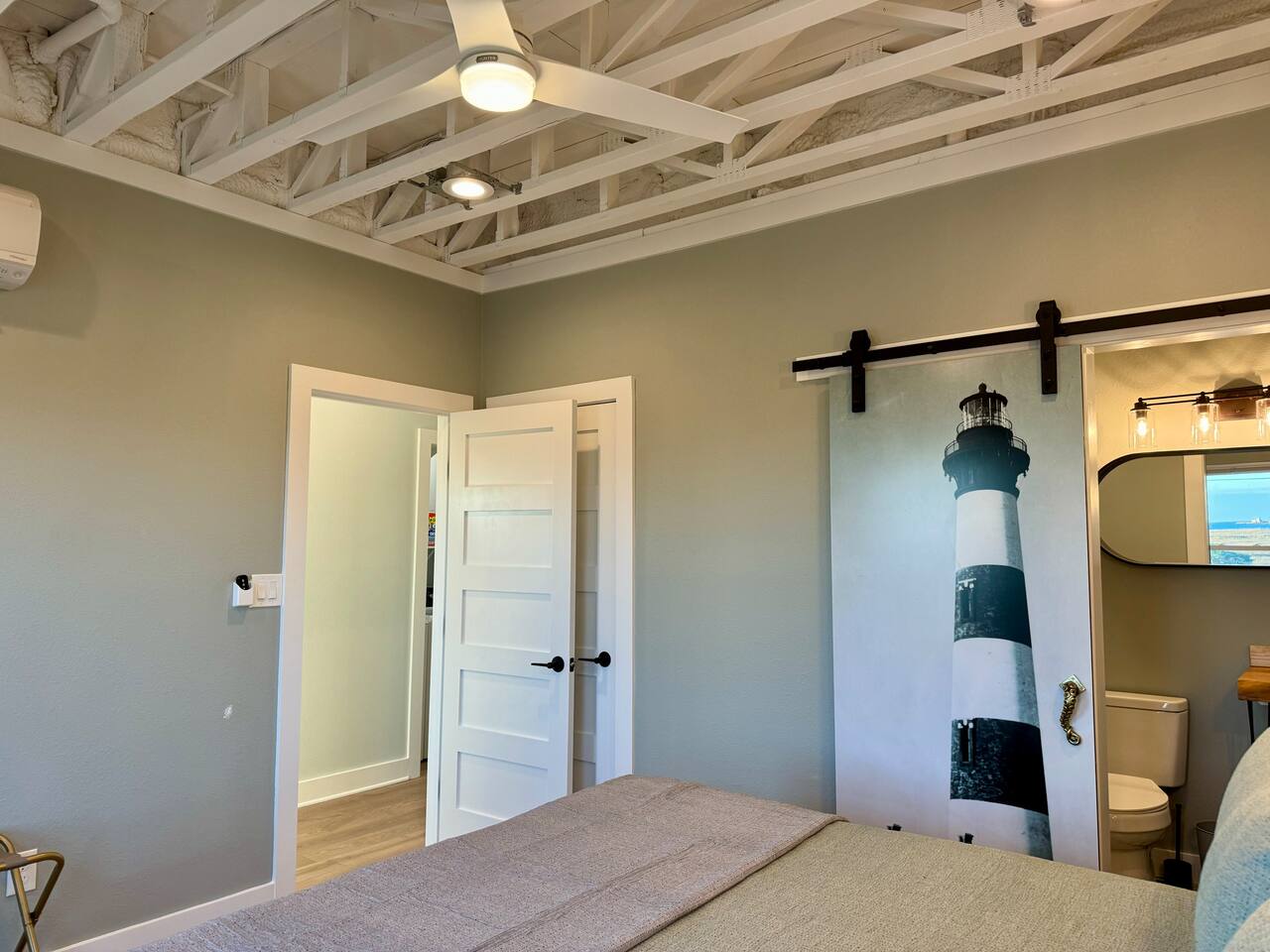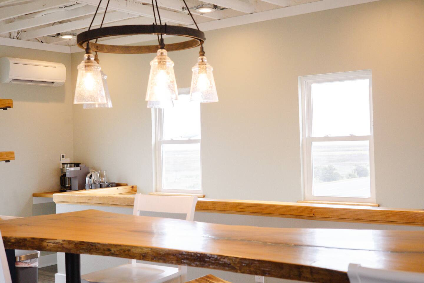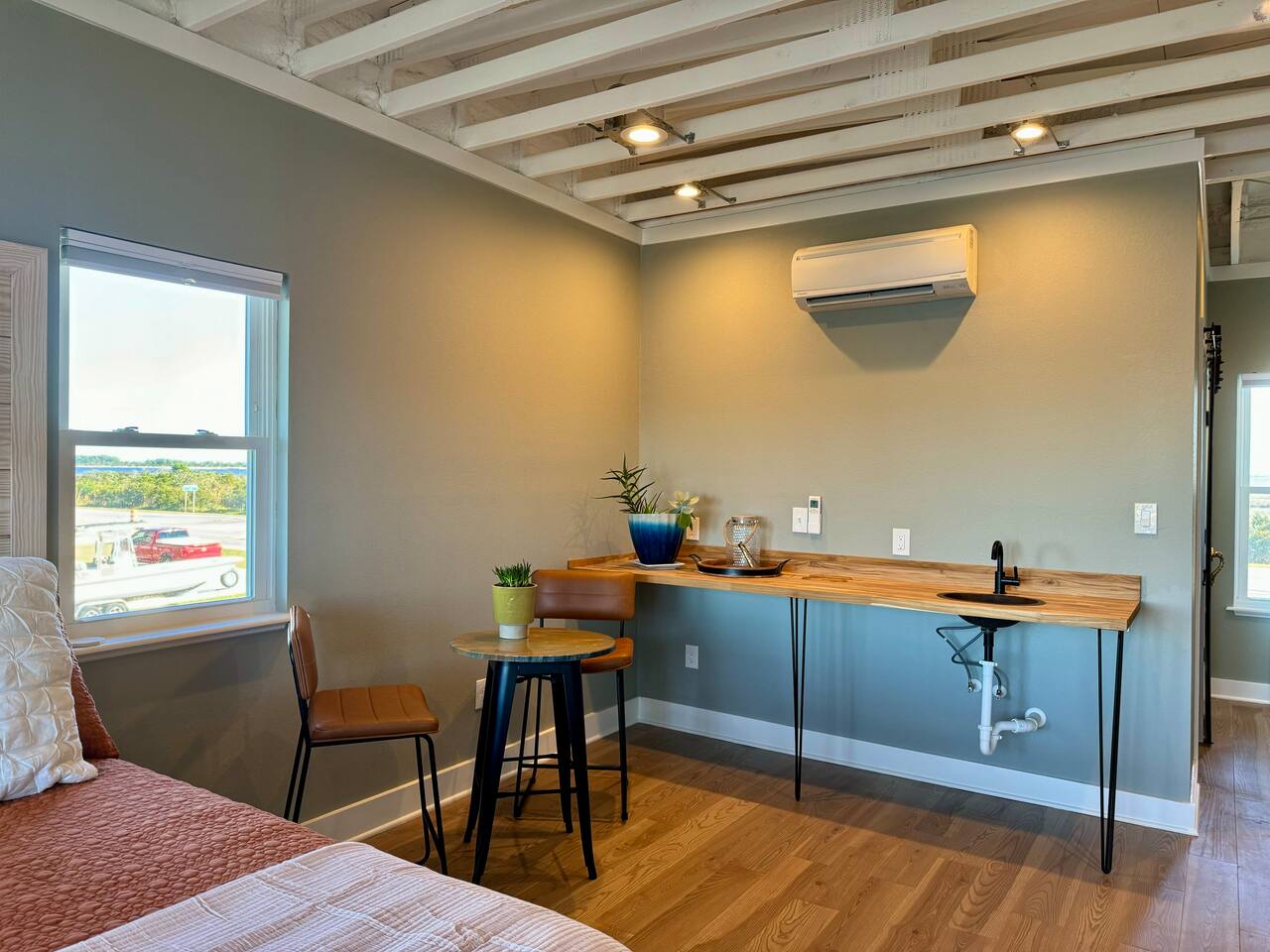 This home adopted a Sea Turtle Hatchling - Travel with Purpose when you stay with us and assist in global efforts to help save this beautiful endangered species! Book your stay now & be among the first to experience this brand-new OBX gem – adventure, serenity, & salty breezes await... 💦 Water, water everywhere! Fish, crab, or launch your kayak right from your private dock 🚤 Quick boat access to some of the best offshore fishing on the East Coast 🏖️ Just 1.6 miles to the beach for sun-soaked days in the sand 🌅 Only 4 miles to historic Downtown Manteo – go by car or boat! 🌉 Located right on the scenic Causeway – centrally placed to explore all of the OBX In the Spirit of Nags Head - As you pull into the driveway there is parking that leads you under the home. There is an outdoor shower located here for your convenience to rinse off outside prior to going in after an enjoyable day at the beach or after a day on your boat! Go up one flight of stairs to the main entrance. This leads you into the level with 4 bedrooms each with their own attached bathroom, king bed and tiled shower! Two of the larger suites have a wet bar as well for your added enjoyment! One of the larger suites has a spacious desk with printer to keep you productive while away! Three of the four bedrooms have slider doors that lead out to the deck facing Pond Island! Washer and dryer located on the bedroom level. Go up one internal flight of stairs to the top-level open concept Living room and eat-in well stocked kitchen with custom made live edge dining table! Large couch and two swivel chairs to accommodate eight in the living room with large flat screen TV above the gas fireplace. Open shelving kitchen with stainless appliances with a bonus second fridge to house your drinks or catered items! Coffee bar and Half bath also located on this level! Panoramic water views from every angle and therefore no window treatments needed at top level! Slider door from the living room takes you to another level of decking along with a spiral staircase to take you to the very top deck for more unobstructed views - the Town of Manteo, Jockeys Ridge, Jeanette’s Pier, the Bodie Lighthouse, watch the fishermen drive back to their slip in the distance as they head towards the Marc Basnight bridge, the views are endless! Inside of house is just under 2000 square feet; however, enjoy 3000 square feet of rooftop and deck!