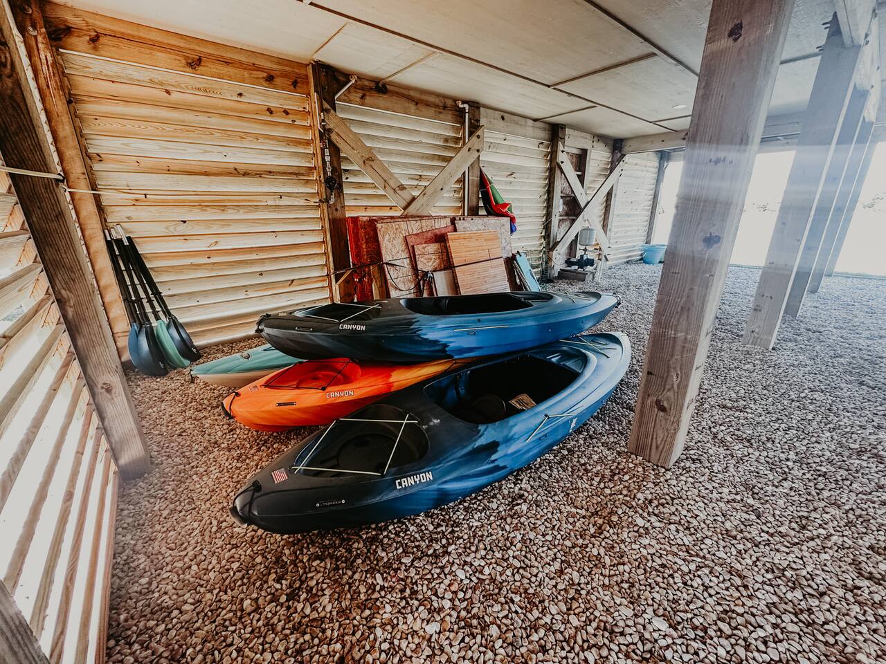 All areas are for guest use with the exception of the locked owners closet and locked boat box 4 kayaks with life vests and paddles to be used at your risk and for your enjoyment! Owner does have their private triton parked at the dock during the warmer months May-October! It is possible to book a boating cruise, sunset cruise, sunrise cruise during your stay that leaves from the property, depending on Captain availability and weather. Please let your Host know if you are interested in booking this during your stay! There is a platform at the dock to easily launch your kayaks and SUP (stand up paddle boards!)
