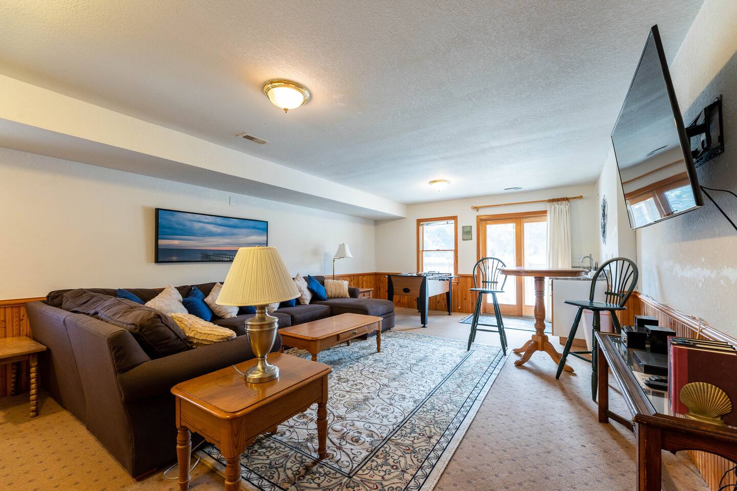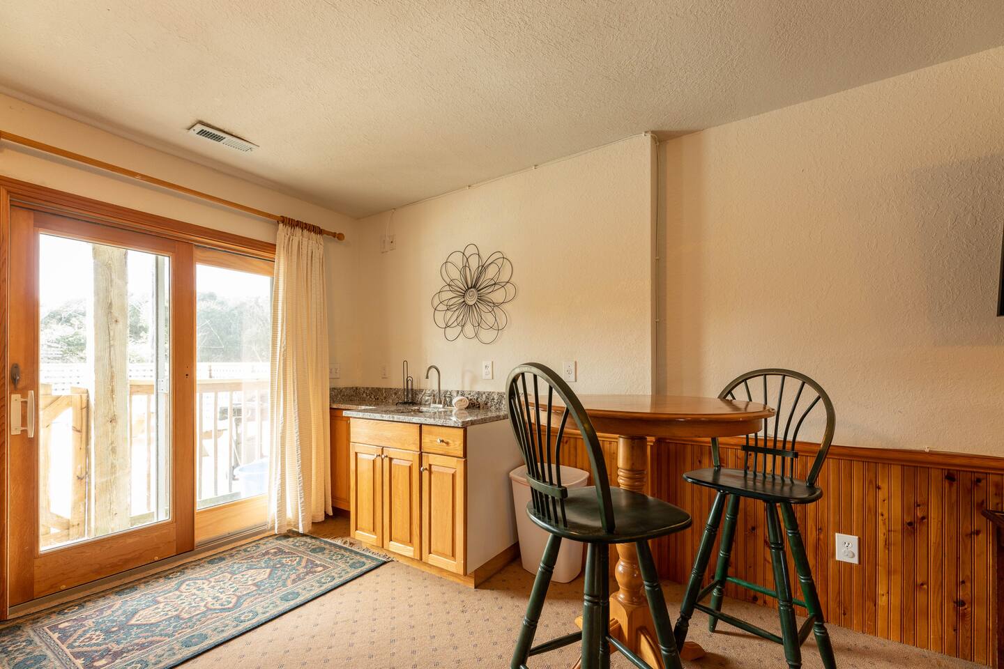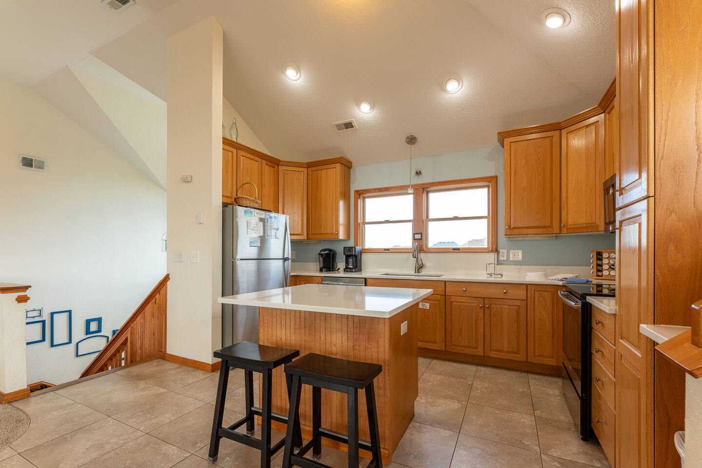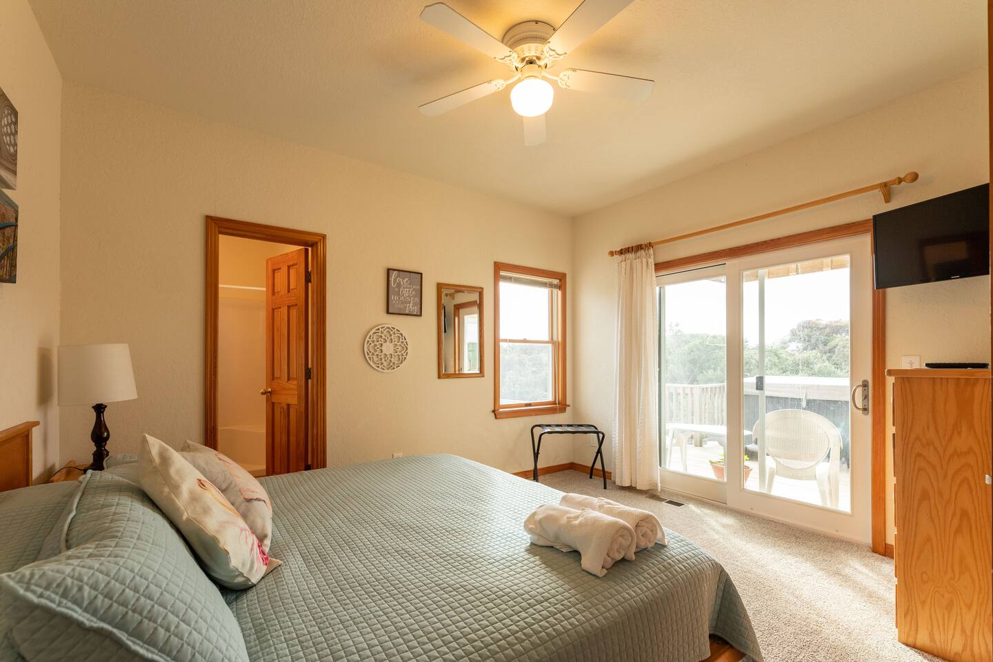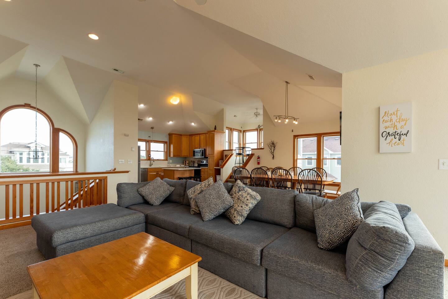 Book now and get ready to sink your toes in the sand – your Duck vacation awaits... 🌊 Just 600 feet to the beach – no major roads to cross! 🏖️ Private pool & hot tub – your own backyard oasis 🔥 Poolside grill & fireplace – made for cookouts and cozy nights 🎯 Putting green – fun for kids and adults alike 🍳 Well-stocked kitchen – perfect for group meals 🎾 Access to Ocean Crest community pool & tennis court 🚶♀️ Only 1.3 miles to Duck Village – stroll to shopping, dining & more 🛏️ Comfortably sleeps up to 15 guests – ideal for large families or groups On arrival you will notice the spacious driveway to make parking easy for you and your group! Basketball hoop located on side of driveway! At ground level outside is a poolside half bath, outdoor shower, and foot rinse for easy access when coming back from beach and while enjoying the pool! Enter home at ground level - living room located on this level with smart TV and wet bar, foosball, one bedroom with two bunk beds & smart TV, one full bathroom, full-size secondary fridge/freezer, laundry room, and slider door leading out to private gated pool, putting green, and propane grill. Go up one level for access to den with card table for 4, smart TV, exterior door leading to second level deck and hot tub. The den/third living room is the perfect card table or place to retreat to work or study. The bedroom with two single beds is also located on this level with smart TV. Those that occupy the two single beds can occupy the hall full bath. Three more bedrooms (king and 2 queen beds) with attached full bathrooms (on-suites), smart TV's in all bedrooms, and access to second level deck from each of these three bedrooms. Go to top level for access to main living room with large smart TV, gas fireplace, dining areas including high top tables with views of the Ocean, well outfitted kitchen, additional deck access off living room, hall half bath, and king bedroom ensuite with shower, jacuzzi tub, dual vanity, and deck access. The home is very spacious with many areas to retreat to! The table in the den or the high-top tables off the kitchen/dining/living area could double an as area to set up your laptop and take care of business while on your getaway!