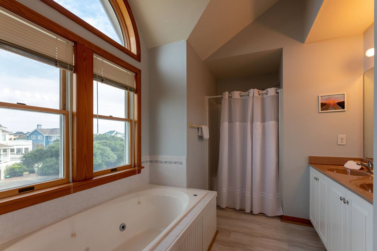 Guests have access to the entire home with exception of the locked owners closets. There are some beach essentials at the house for your enjoyment - beach cart, beach cooler, boogie board, and flotations for pool or ocean, basketball and volleyball. One Turkish beach towel provided per person. Pool is open from April to Columbus Day (October!) *Special Discount for our guests on beach rental supplies & set up between Duck to South Nags Head! Any Questions - please ask your host! *Discount to Local Favorite Restaurant!